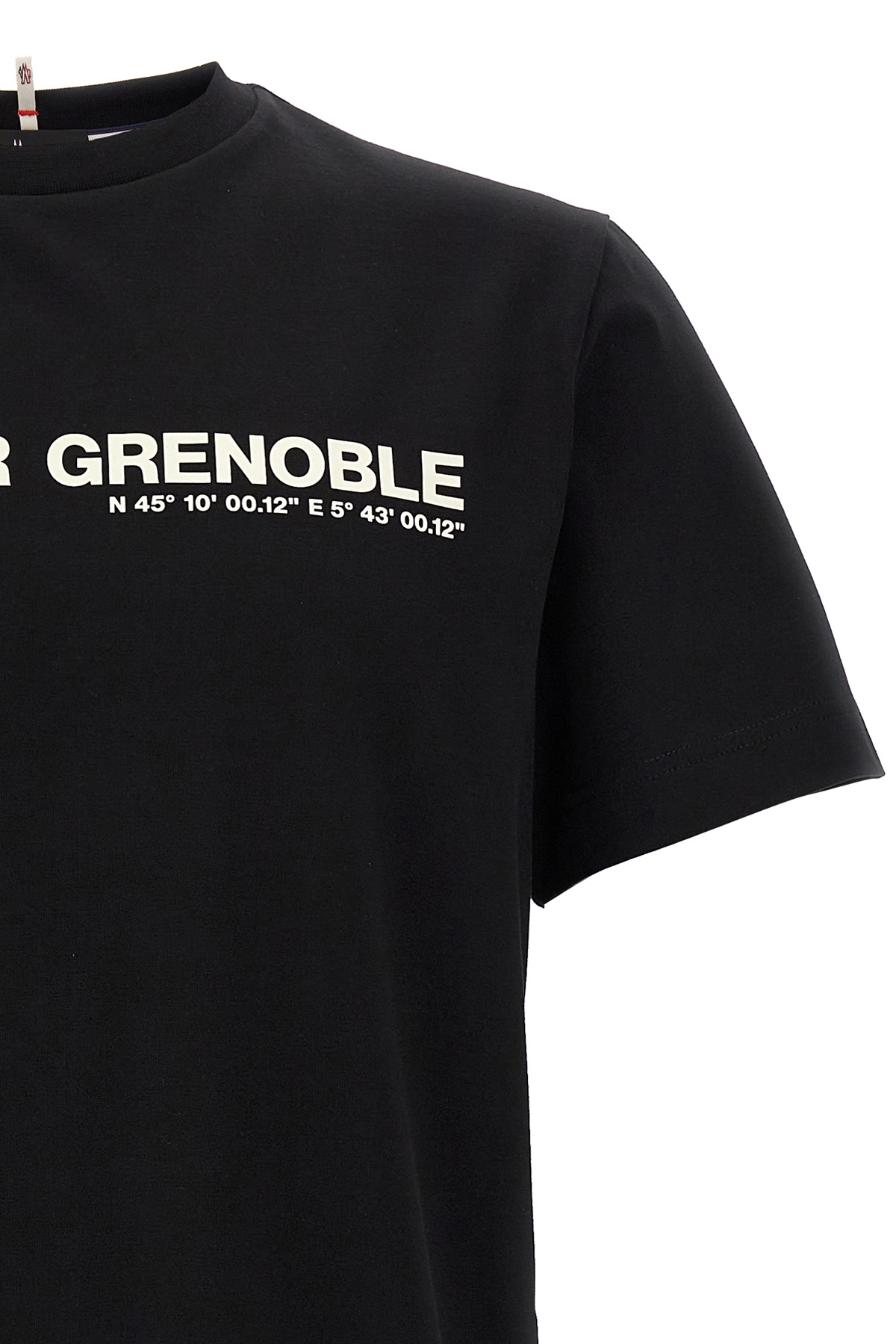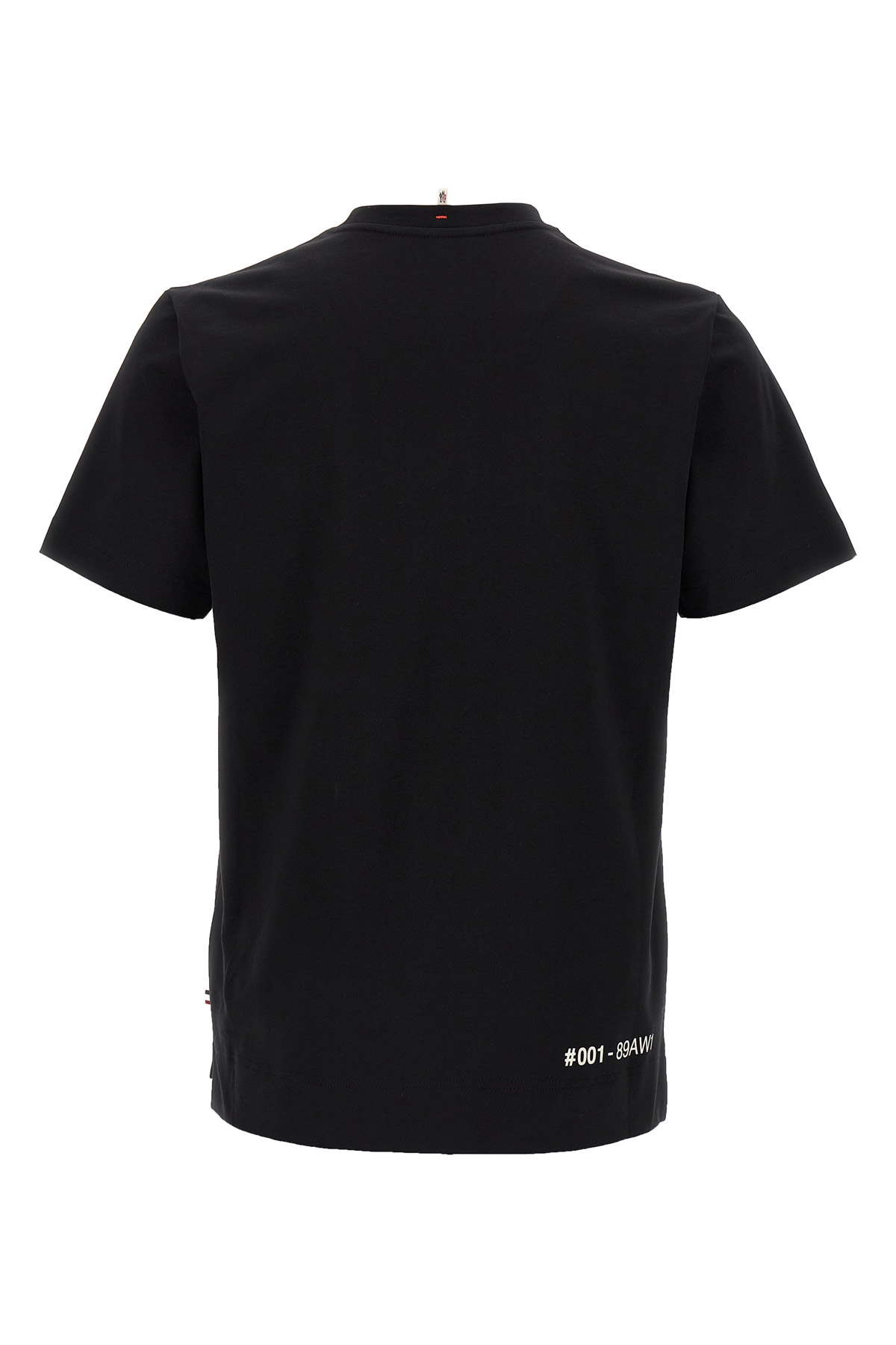 Stretch cotton jersey T-shirt, embossed logo on the front and back, crew neck, short sleeves, side splits.