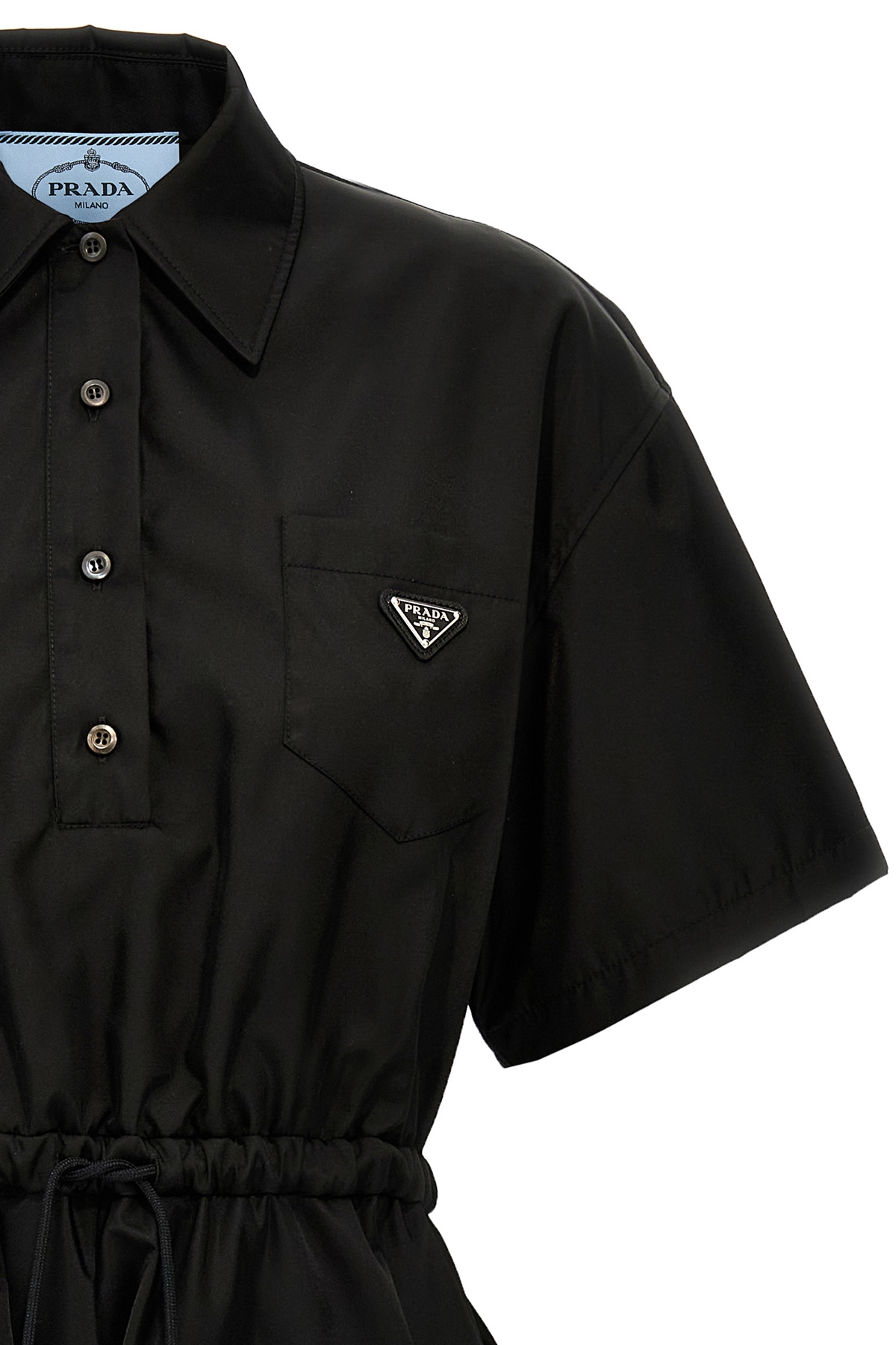 Re-Nylon midi dress with chemisier style, pocket with triangle logo in enamelled metal, elastic with adjustable drawstring at the waist, button closure, short sleeves, full skirt.