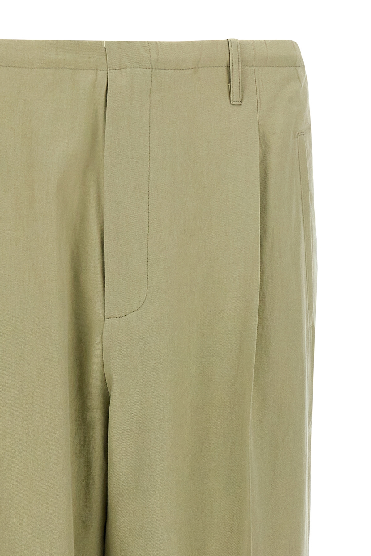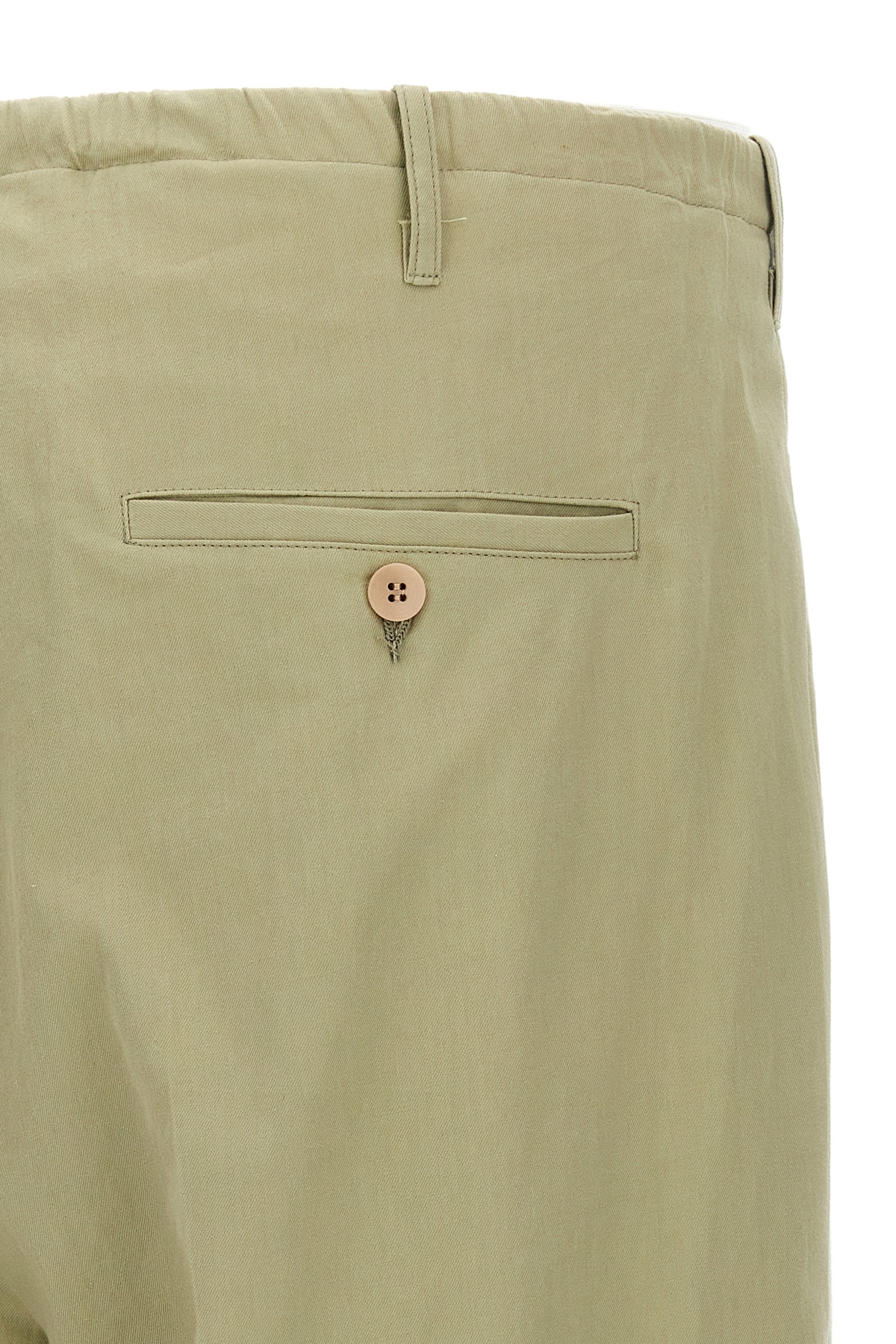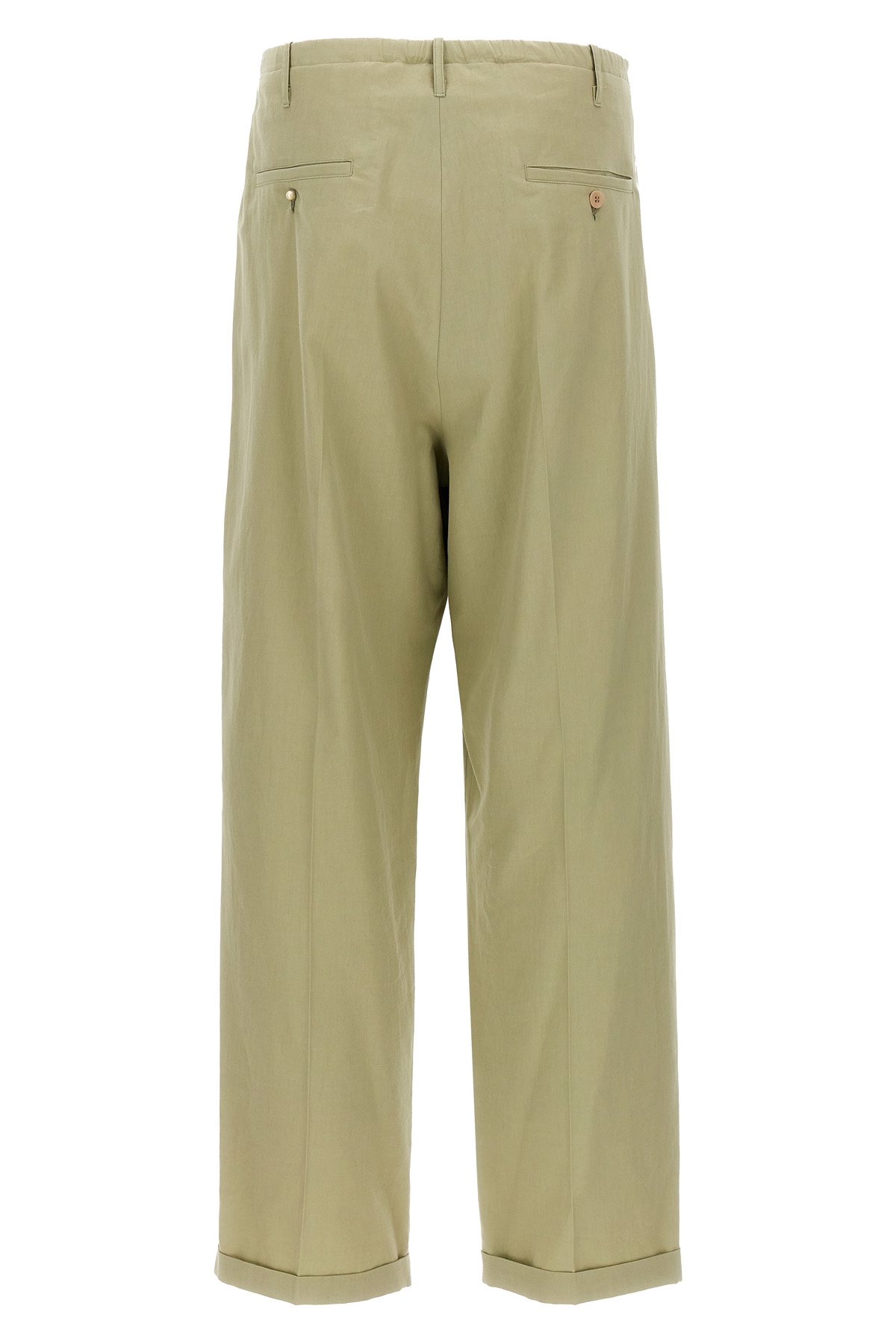 'People's' cotton pants, elastic and drawstring at the adjustable waist, zip flap, pockets, pleat and stretched pleat, turned-up hem.
