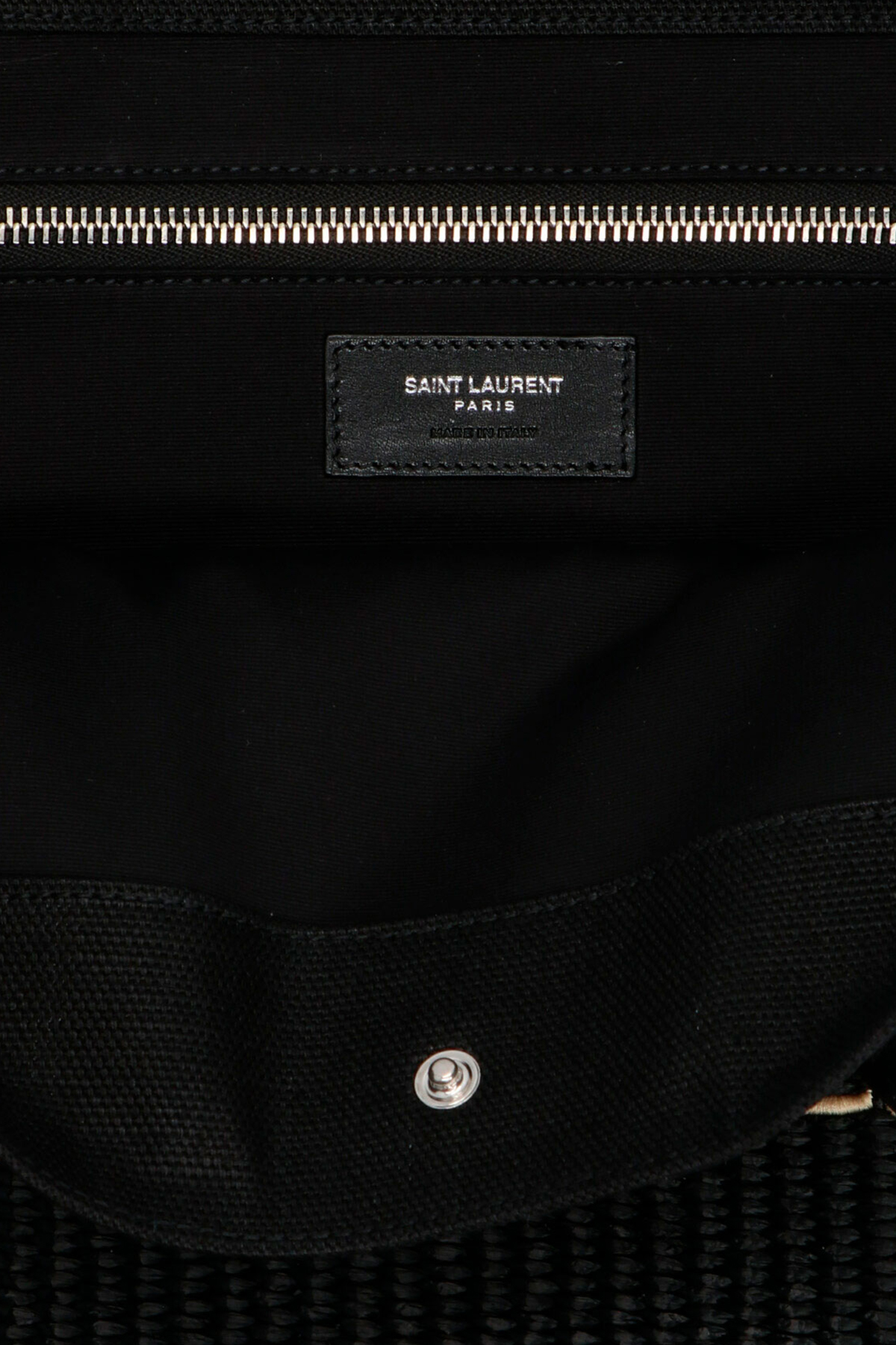 Large 'Rive Gauche' raffia shopping bag with leather details, front logo embroidery, double fixed handles, snap button closure, grosgrain lining, inside zipper pocket.