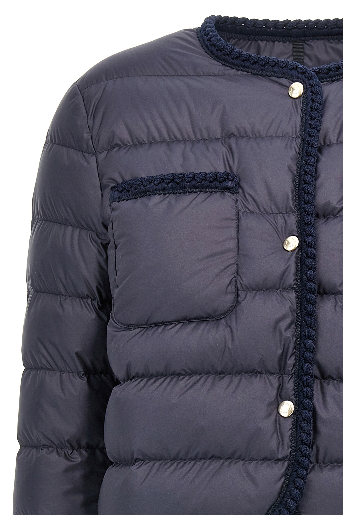 Gencay' microfiber down jacket with satin finish, down padding, tone-on-tone woven fabric piping, crew neck, snap button closure, pockets, long sleeves with tone-on-tone leather logo patch. SUSTAINABLE: product made from recycled materials.