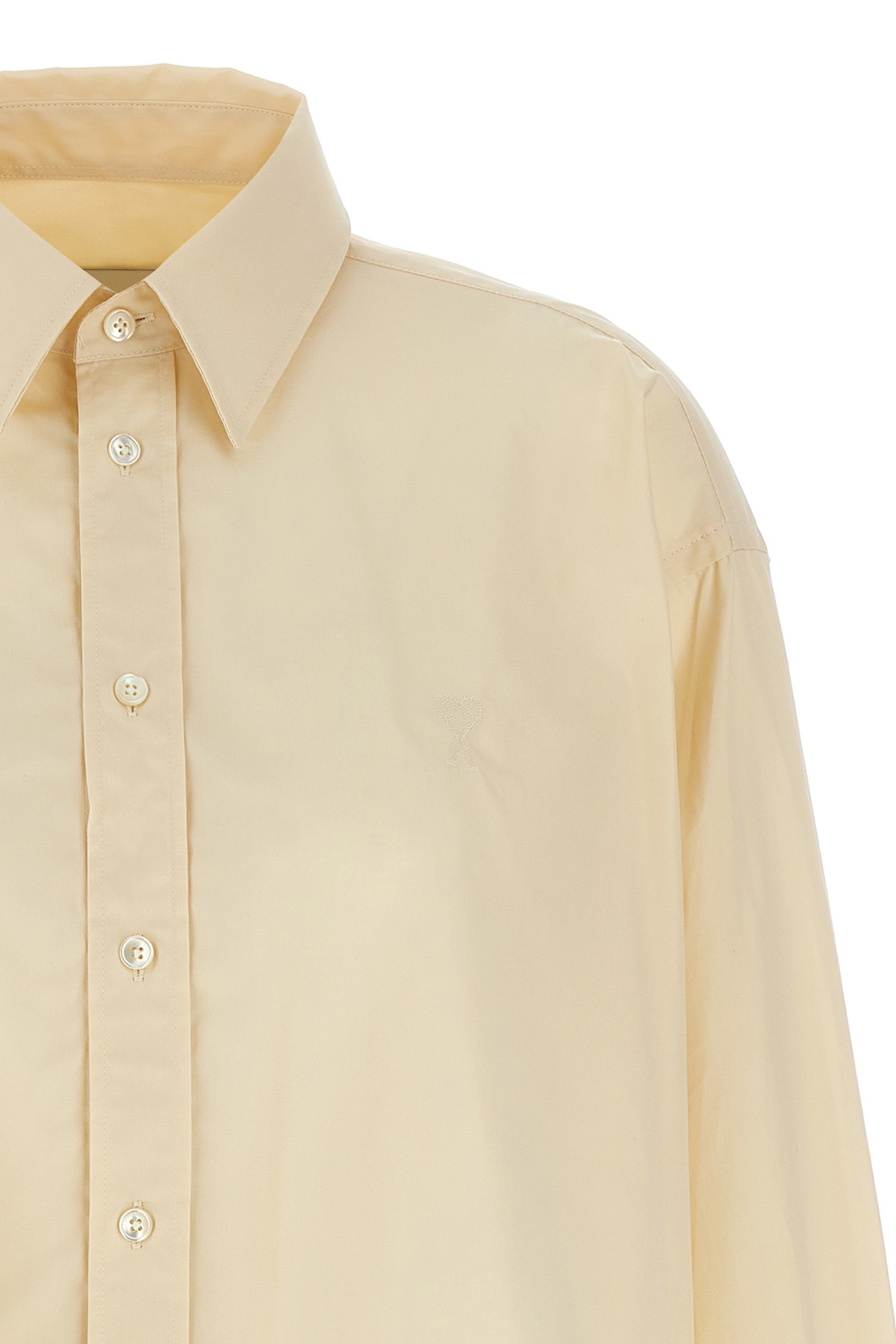 Cotton poplin shirt with tonal 'Ami de Coeur' embroidery on the front, crop style, button closure, long cuffed sleeves.