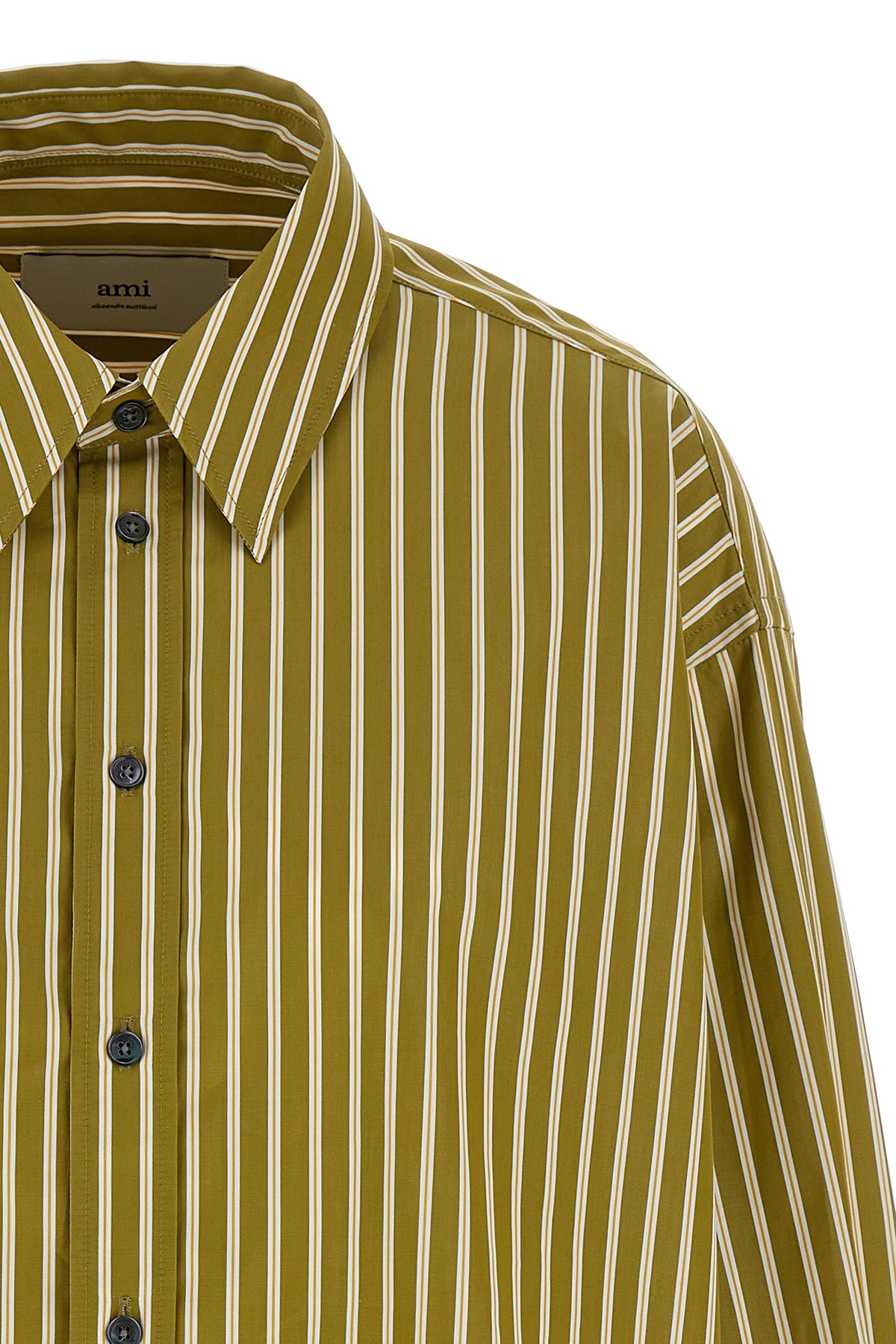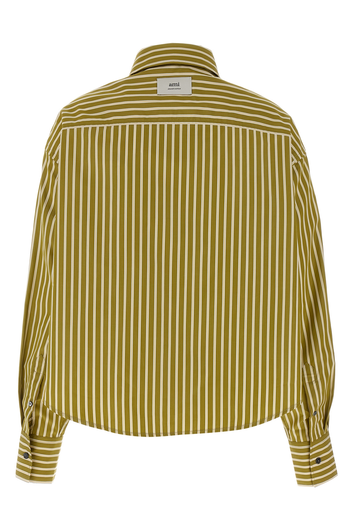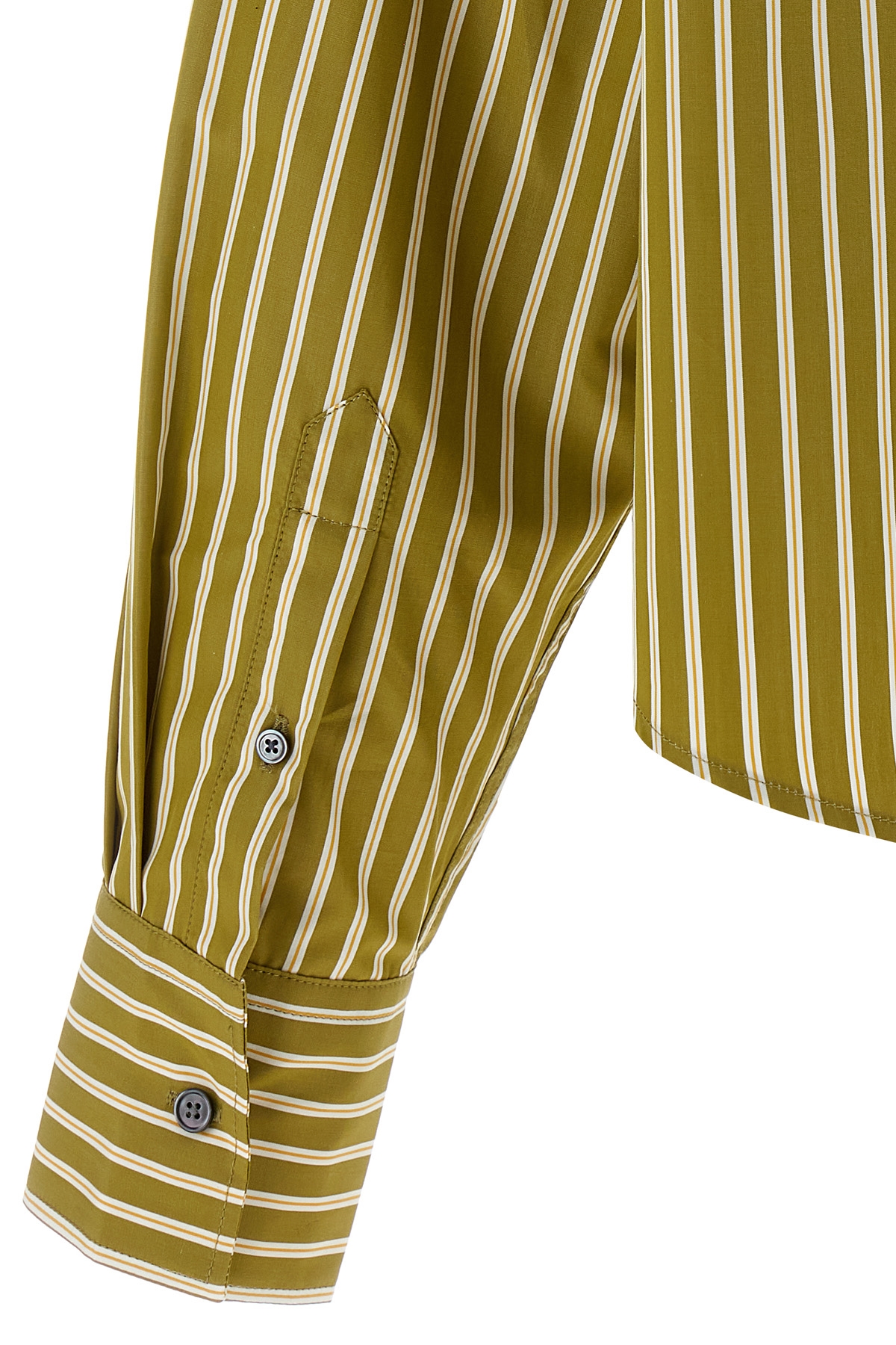 Striped cotton poplin shirt, crop model, back logo patch, button closure, long sleeves with cuffs and dropped shoulders.