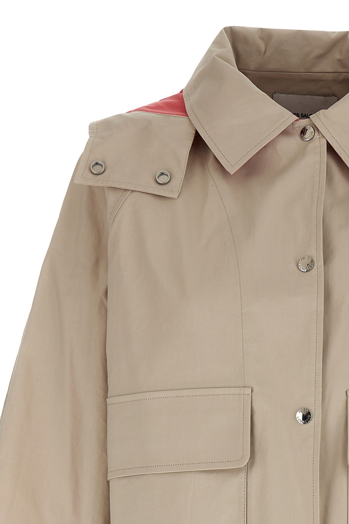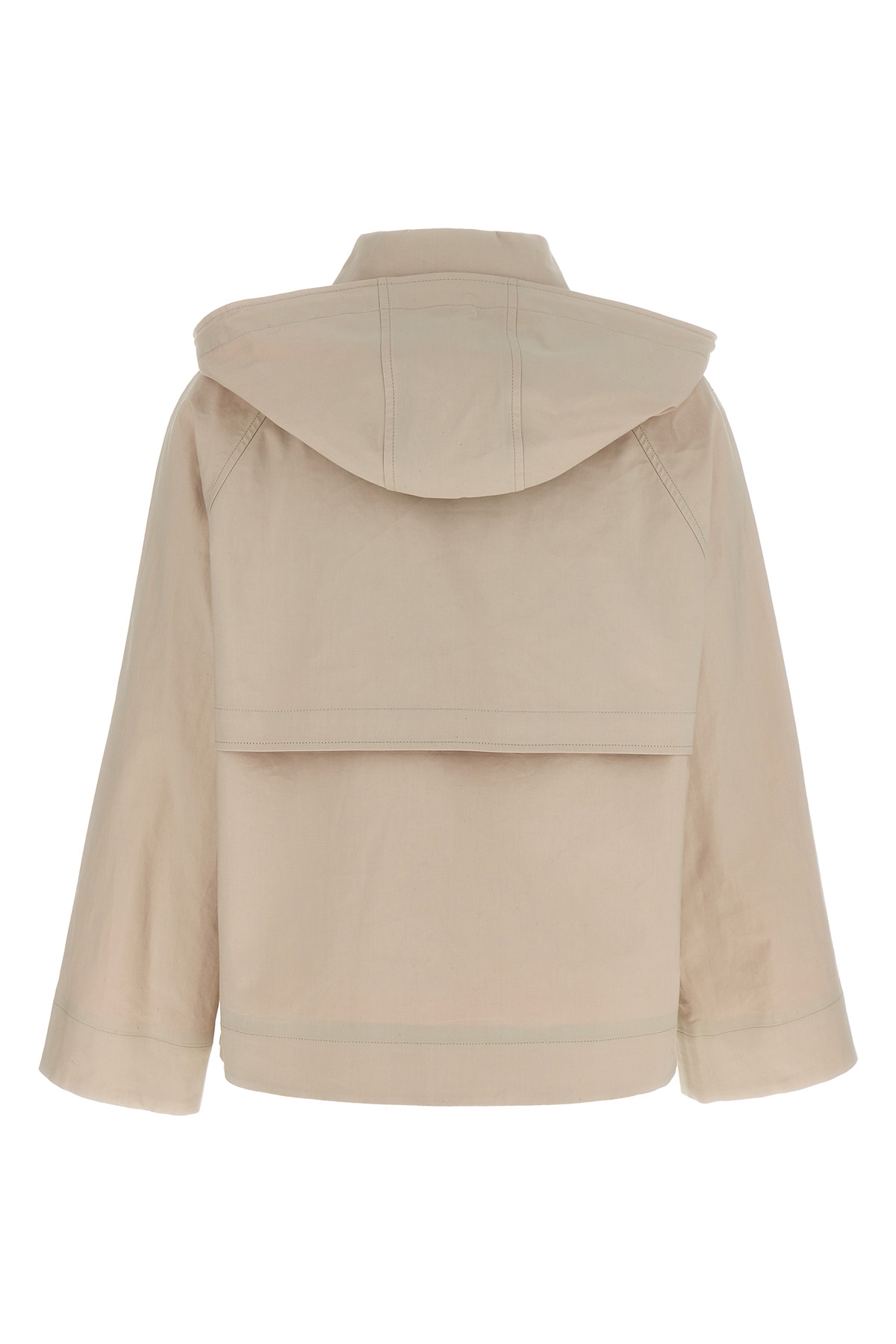 'Honolulu' cotton jacket with removable hood, snap button closure, unlined, long sleeves, pockets.
