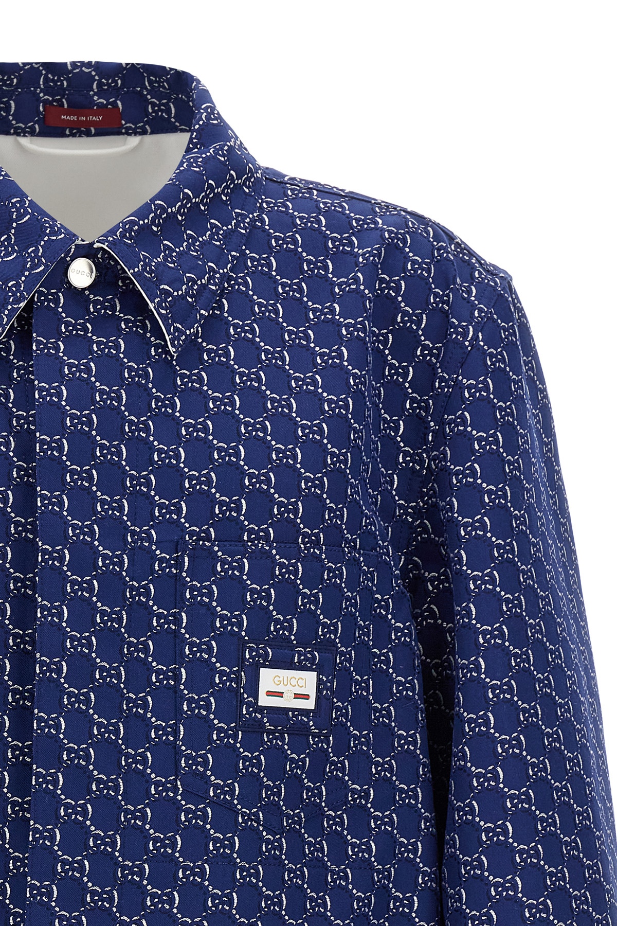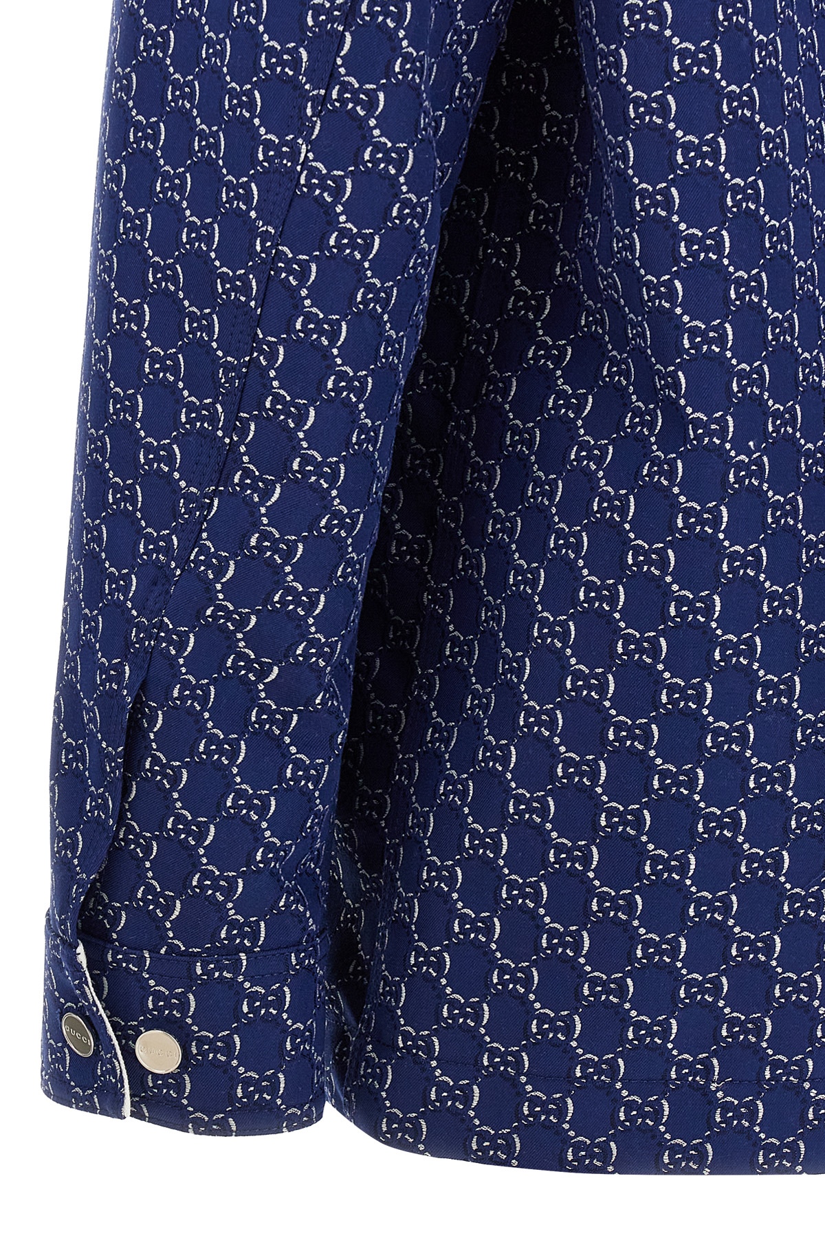 Jacquard cotton jacket with 'GG Shadow' pattern, pocket with Web label and Gucci Incrocio GG, unlined, button closure, pockets, long sleeves with cuffs.