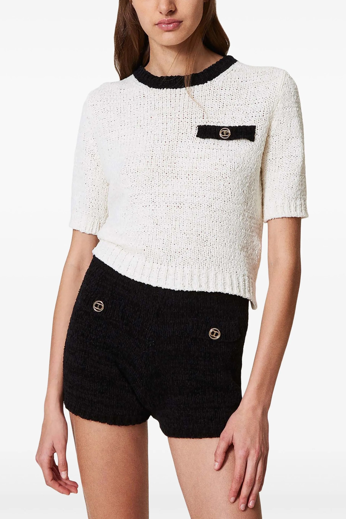 Cotton blend shorts with shaved pattern, trompe l'oeil pockets with metal 'Oval T' logo, elastic waistband.