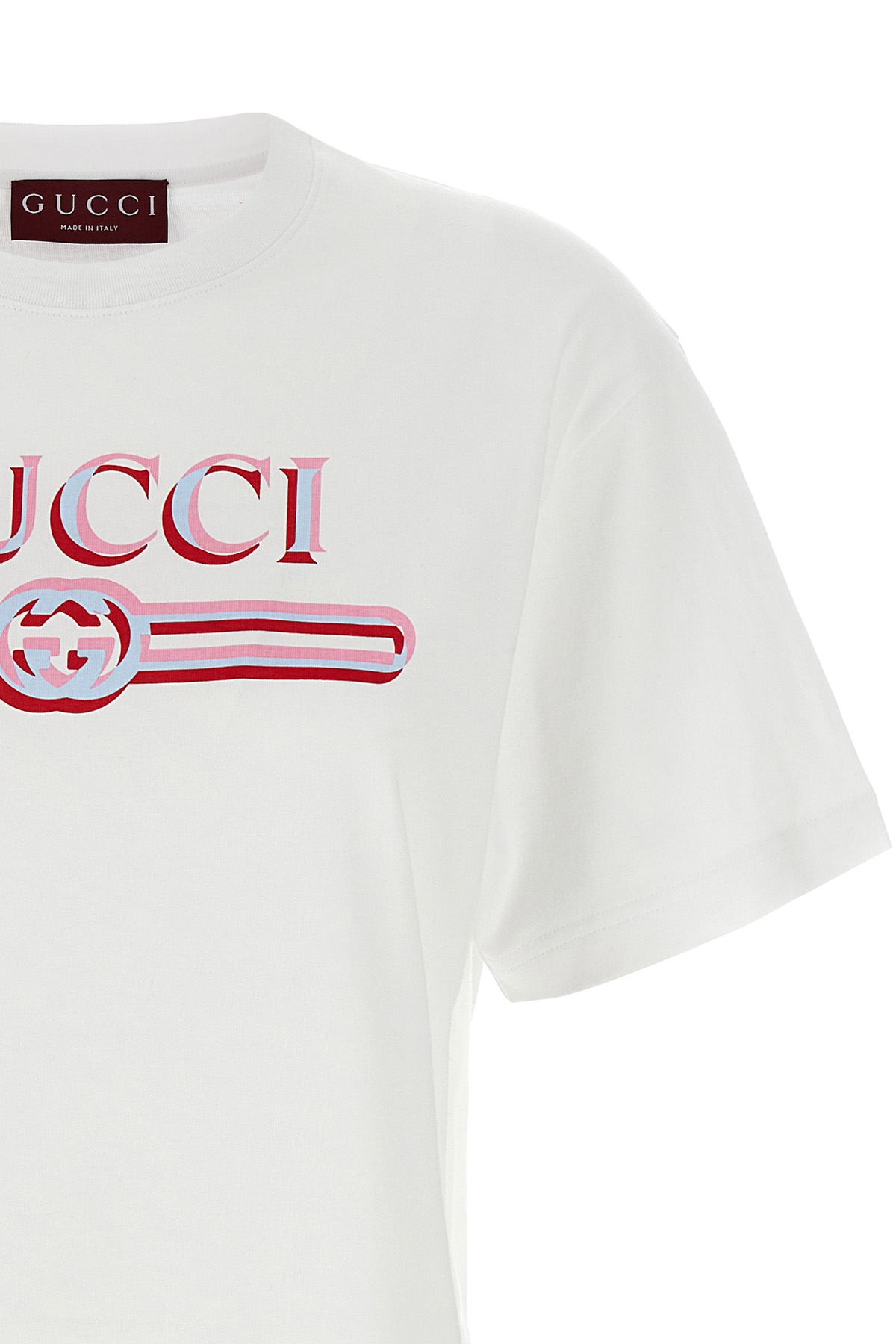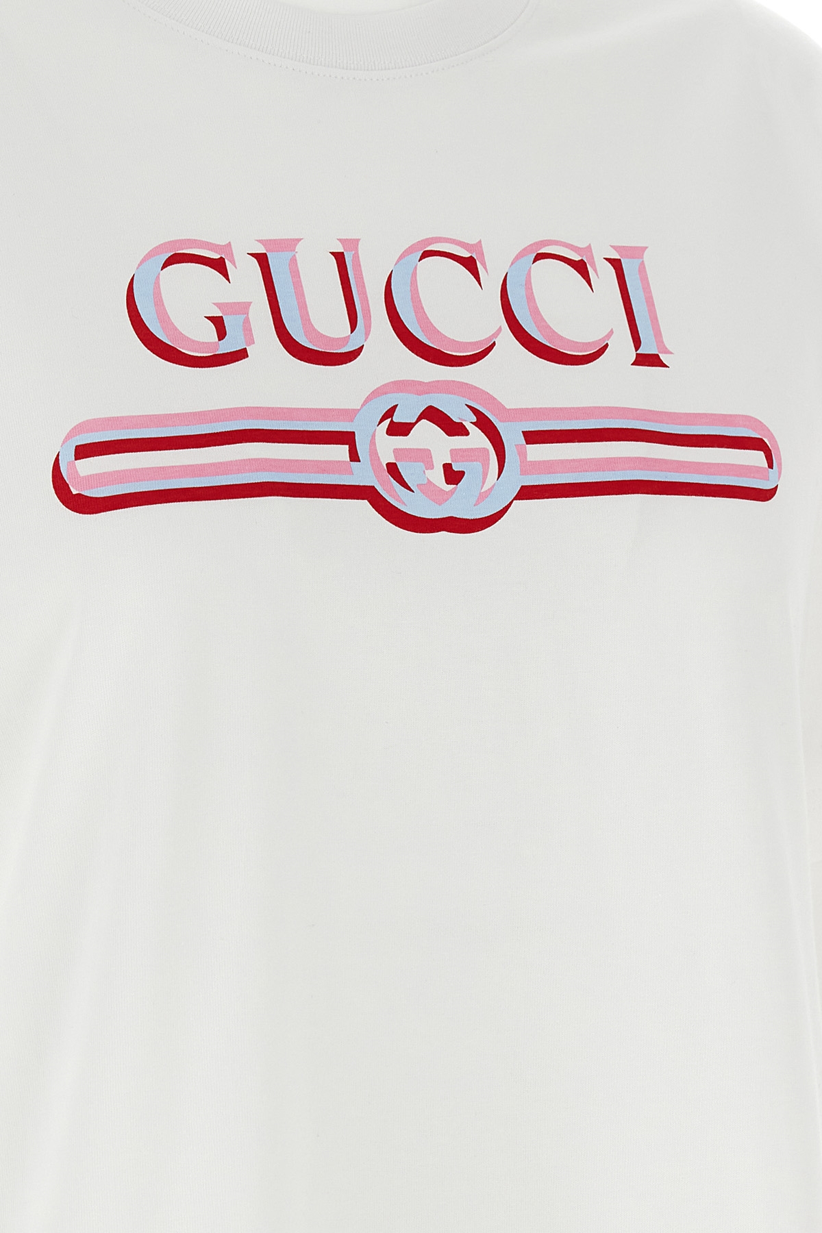 Cotton jersey T-shirt with vintage Gucci logo print on the front, crewneck, short sleeves and dropped shoulders.