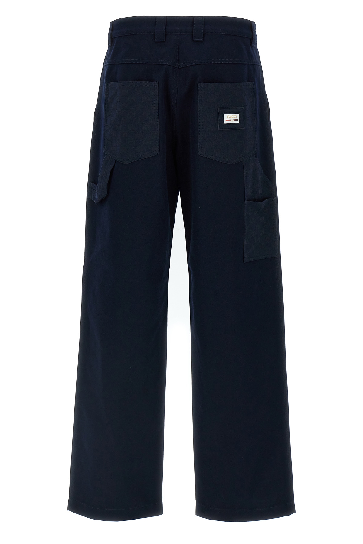 Heavy cotton fabric pants with contrasting GG cotton fabric details, web label and 'Gucci Incrocio GG' on the back, straight leg, pockets, zip and button closure.