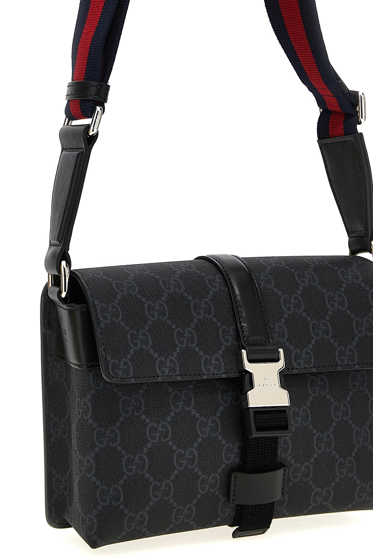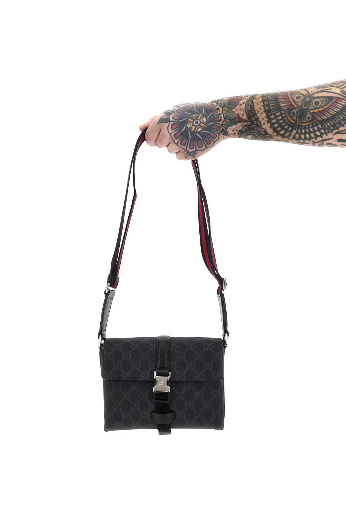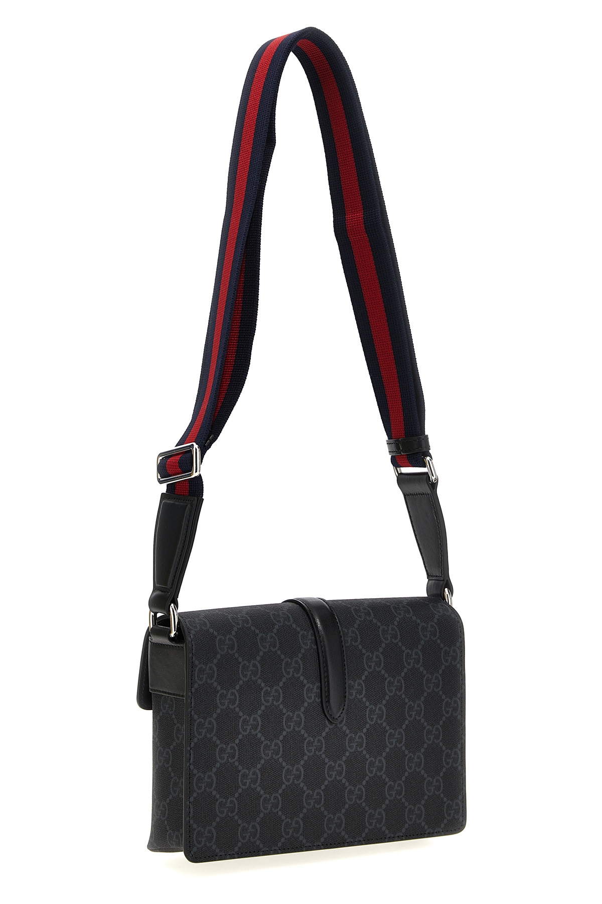 GG Supreme fabric Super Mini GG crossbody bag with smooth leather details, flap closure with metal hook, pocket, adjustable Web ribbon shoulder strap.