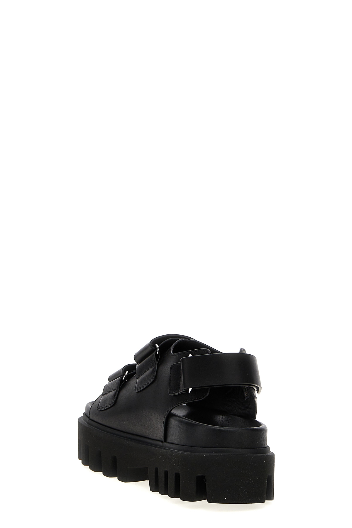 'Parachute' leather sandals with triple adjustable strap with Velcro, metal detail with engraved logo, thick notched sole.