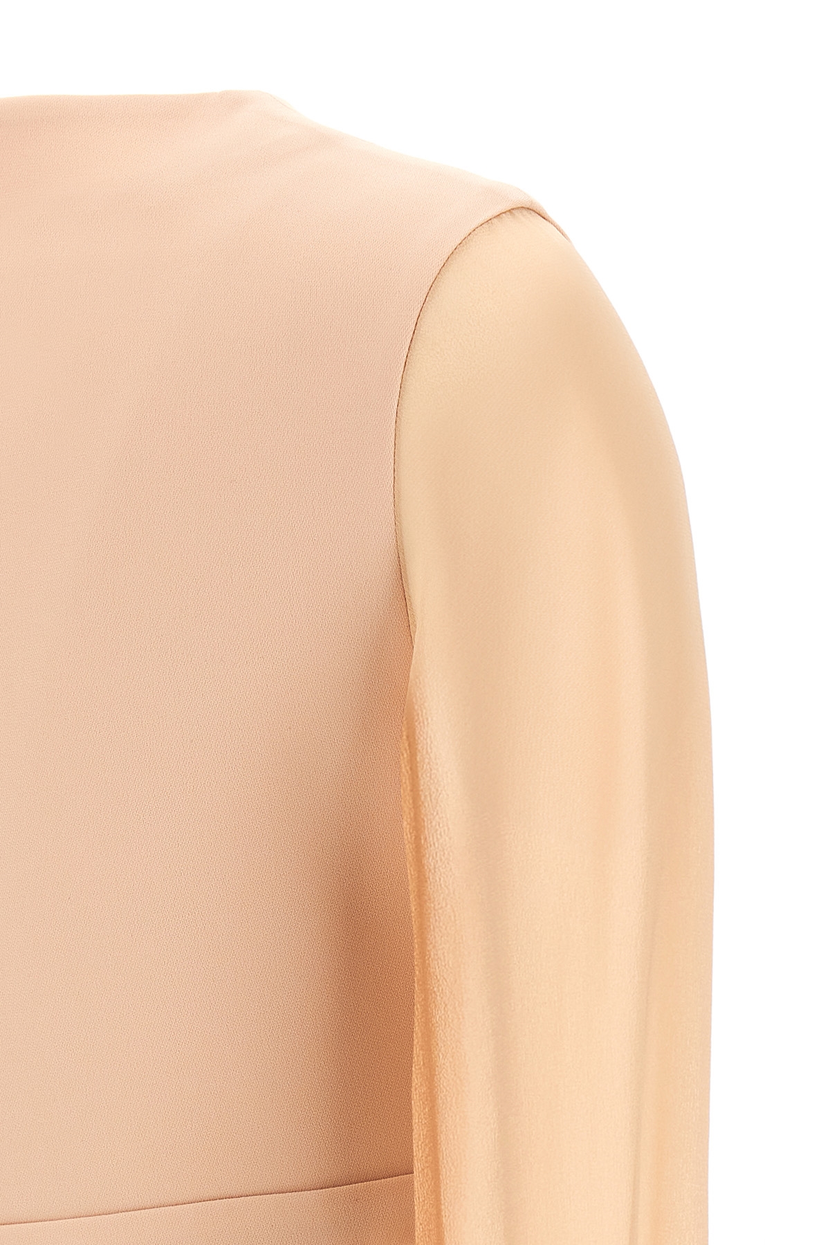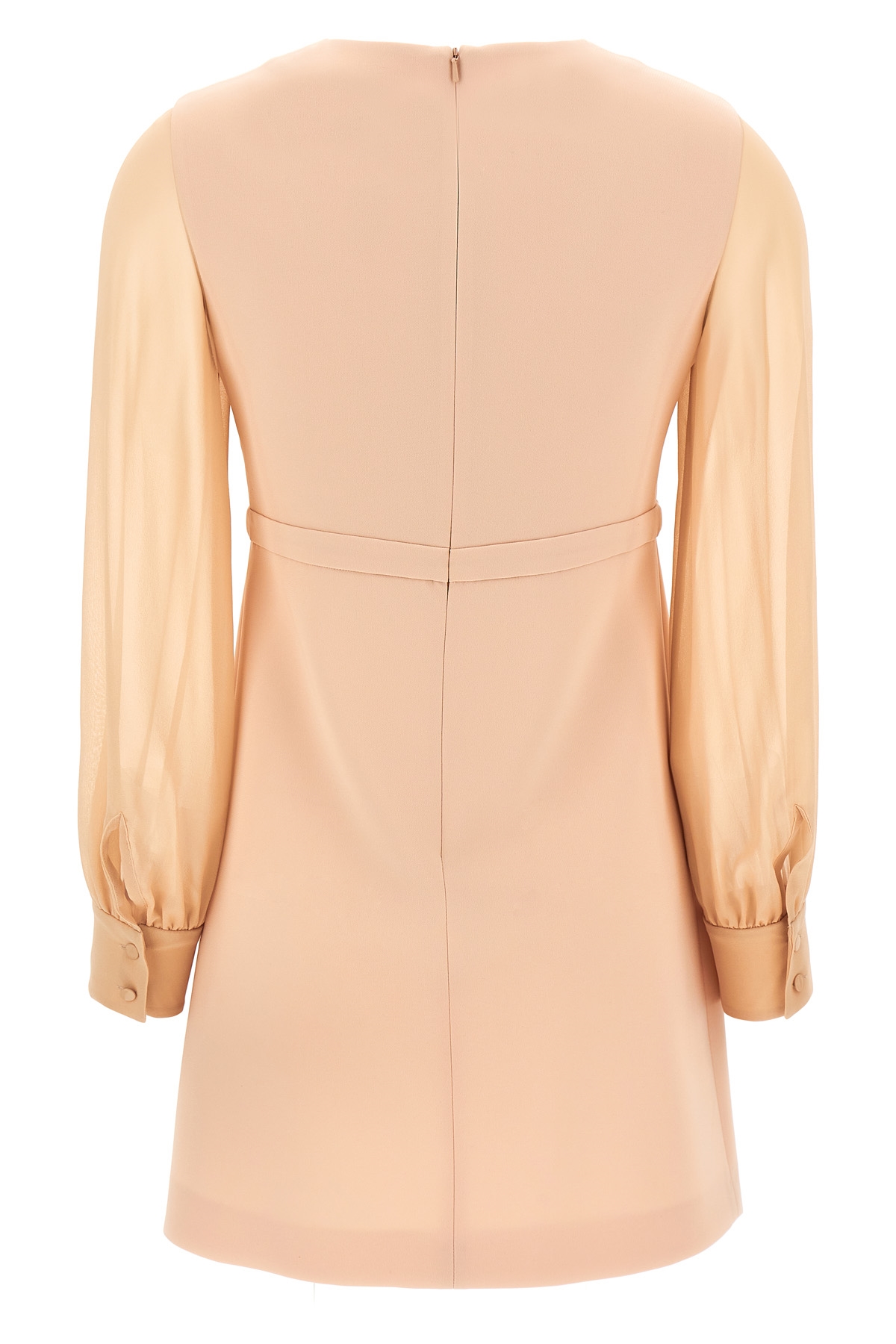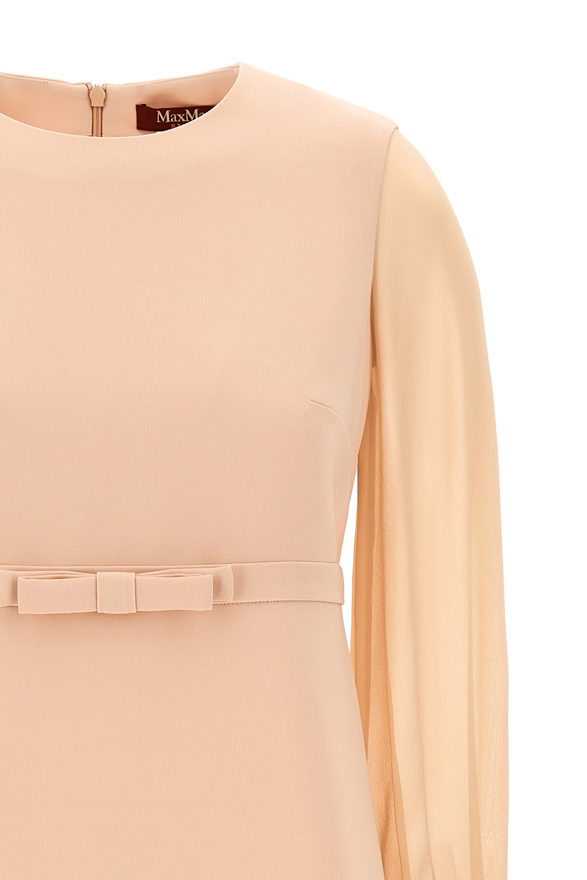 'Ritmo' midi dress, crew neck, bow detail at the waist, back zip closure, semi-transparent sleeves, long, button cuffs.