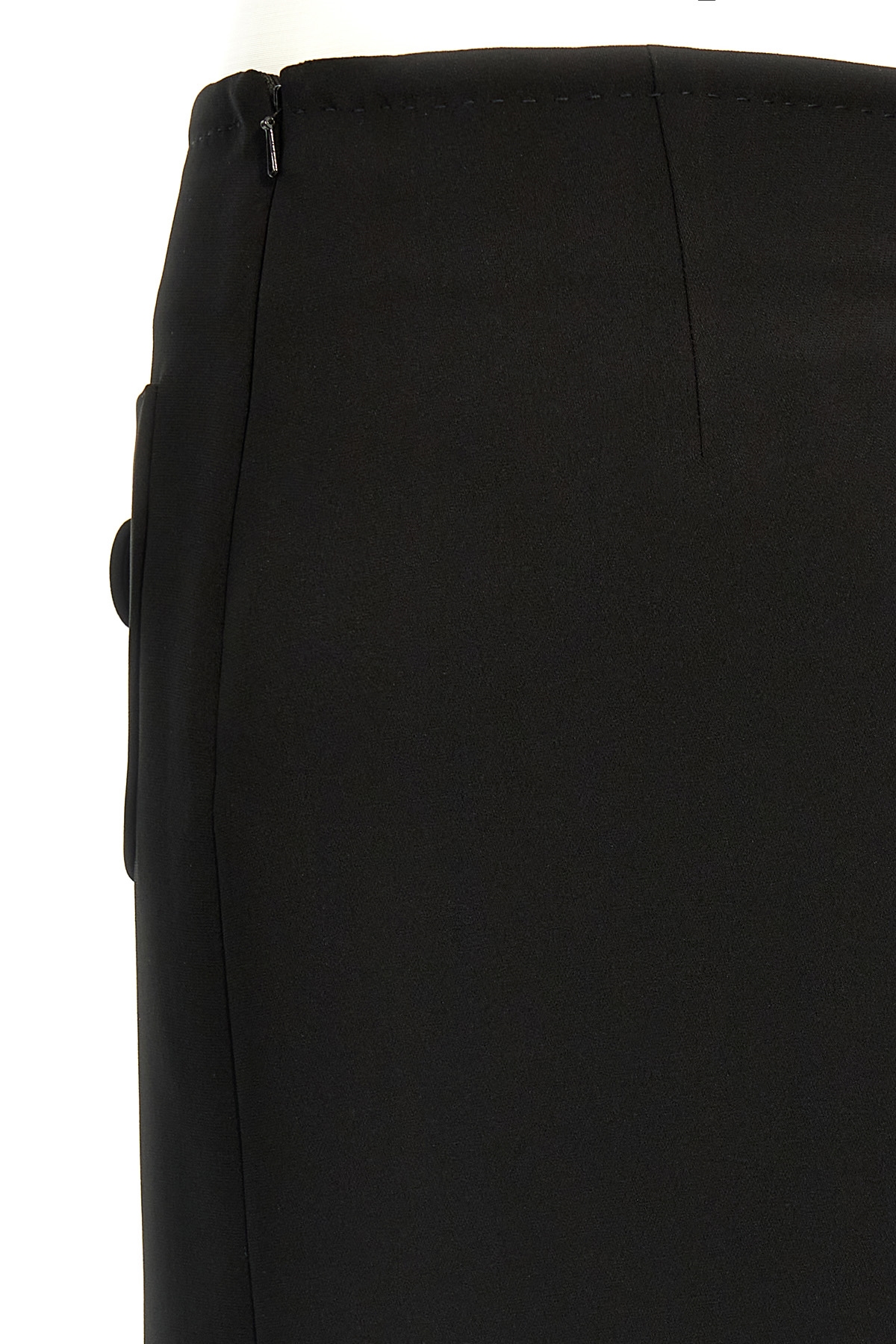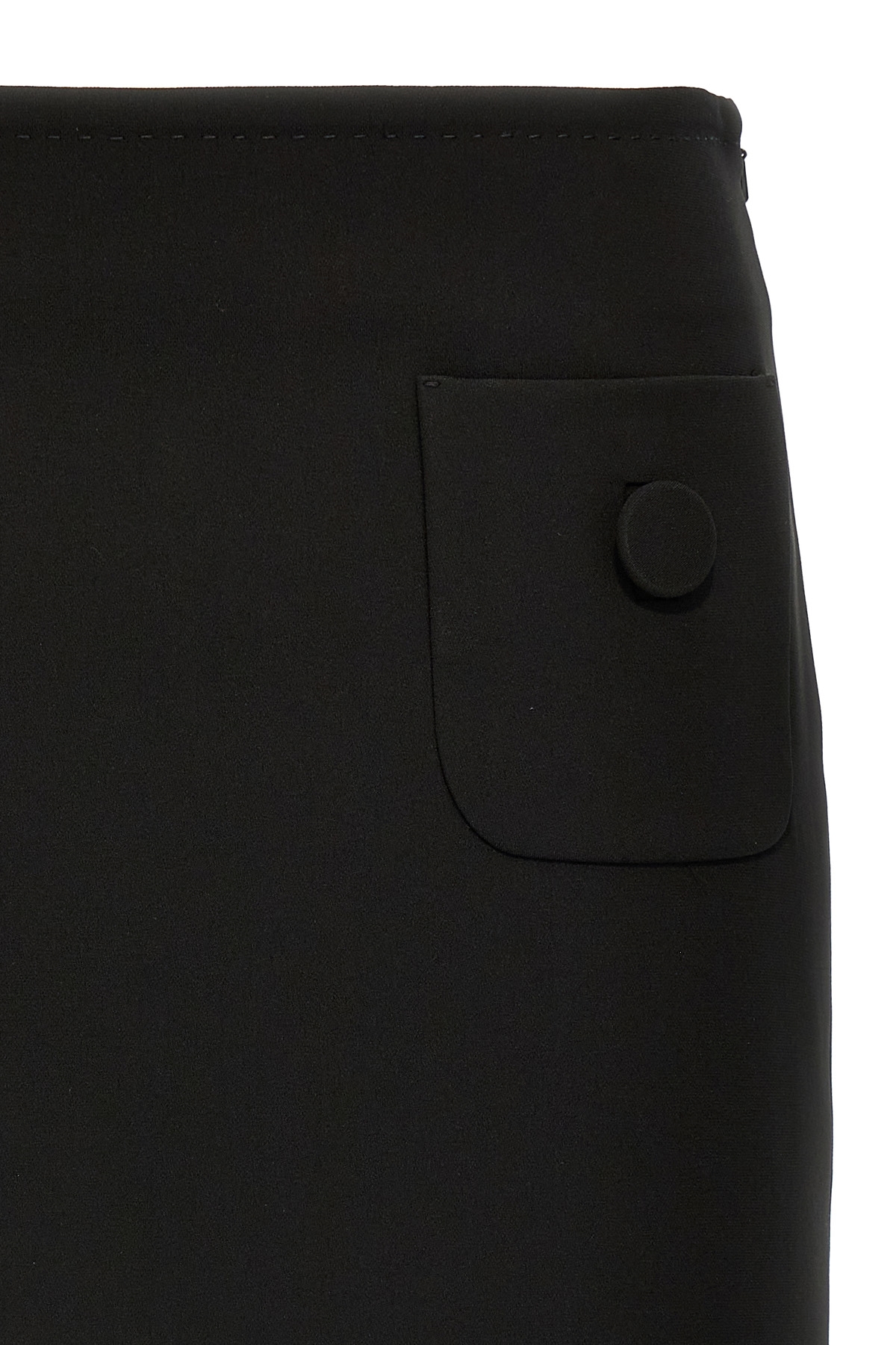 'Pagine' slightly flared mini skirt, front pocket detail with button and stitching, side zip and hook closure.