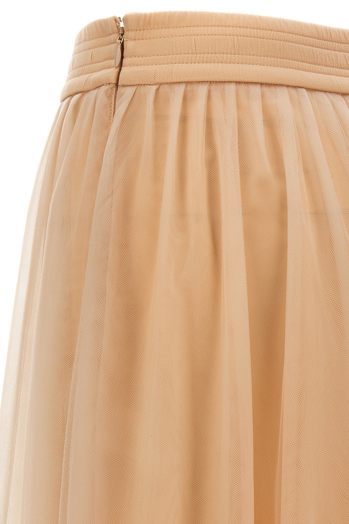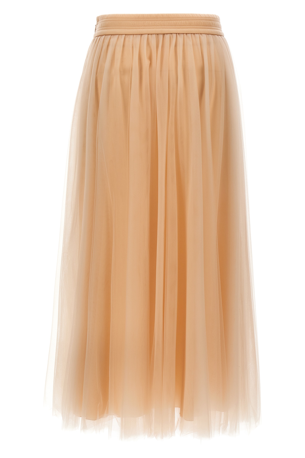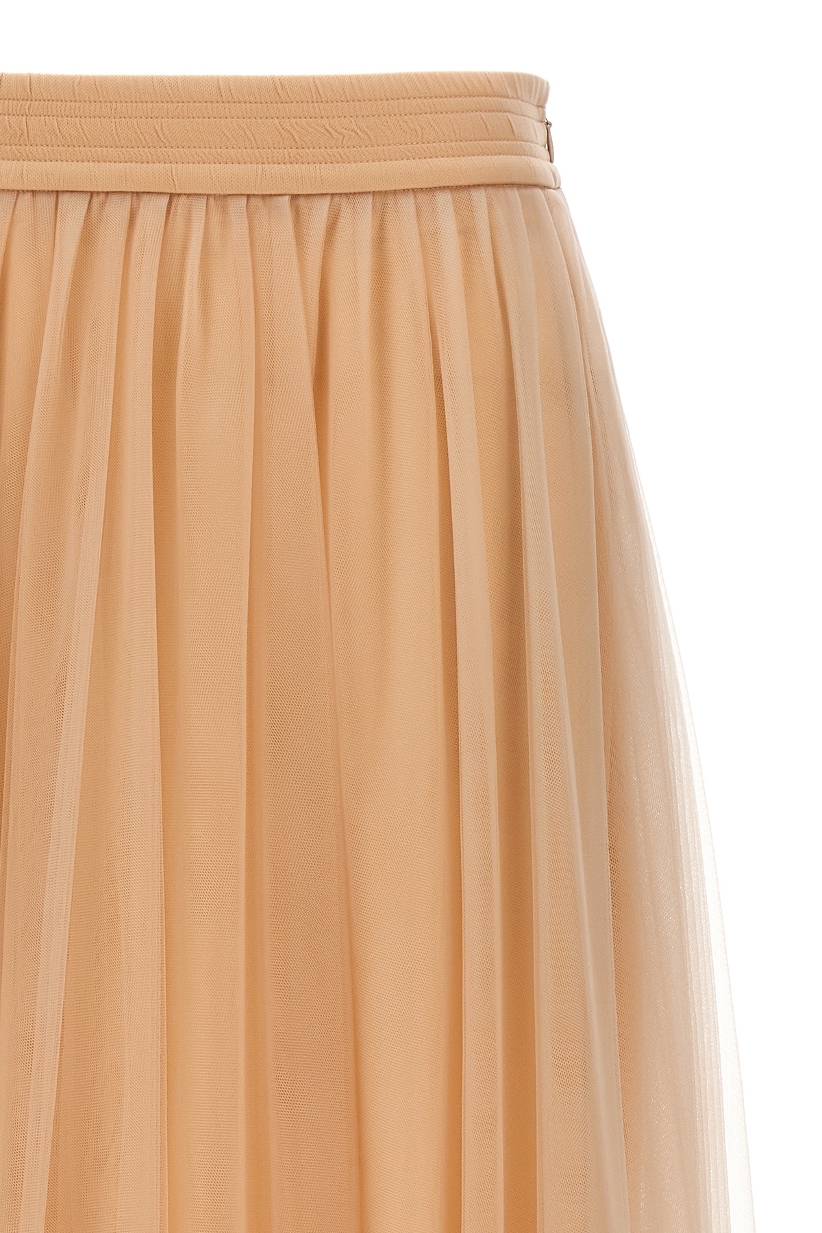 Longuette skirt in tulle, wide model, curled with elastic waistband.