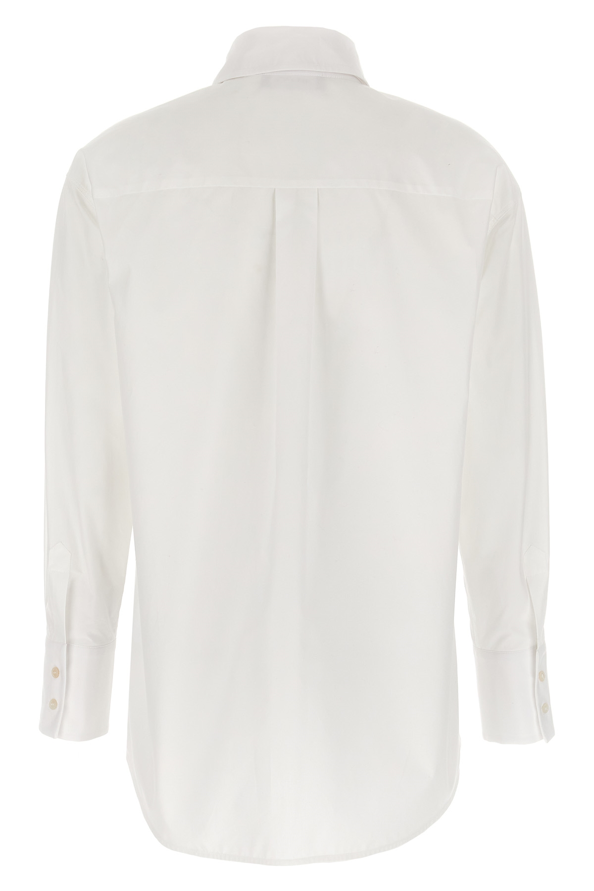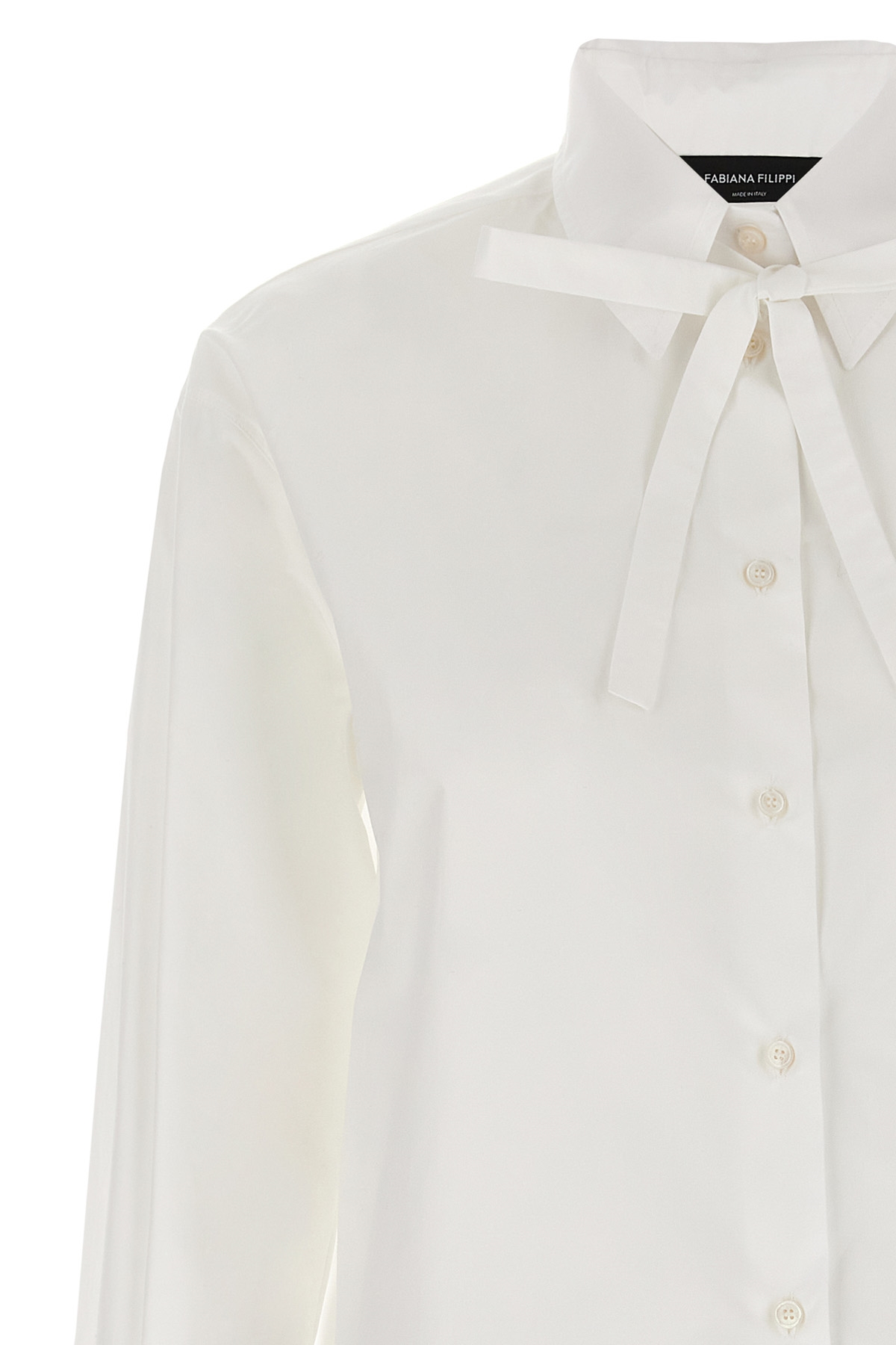 Cotton poplin shirt, collar with knotted lace, button closure, long cuffed sleeves.