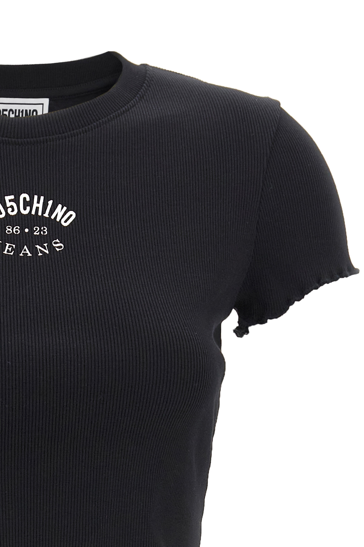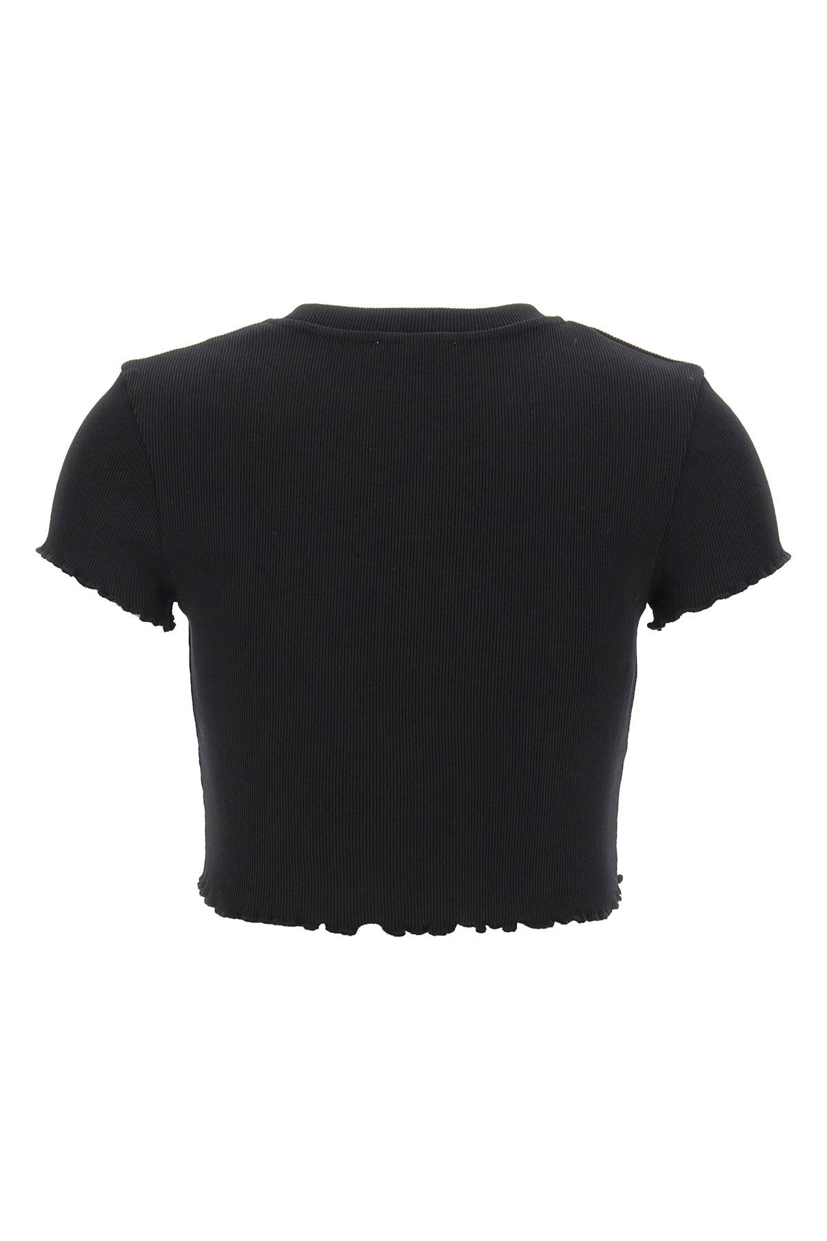Stretch ribbed cotton T-shirt, crew neck, crop pattern, front logo print, short sleeves.
