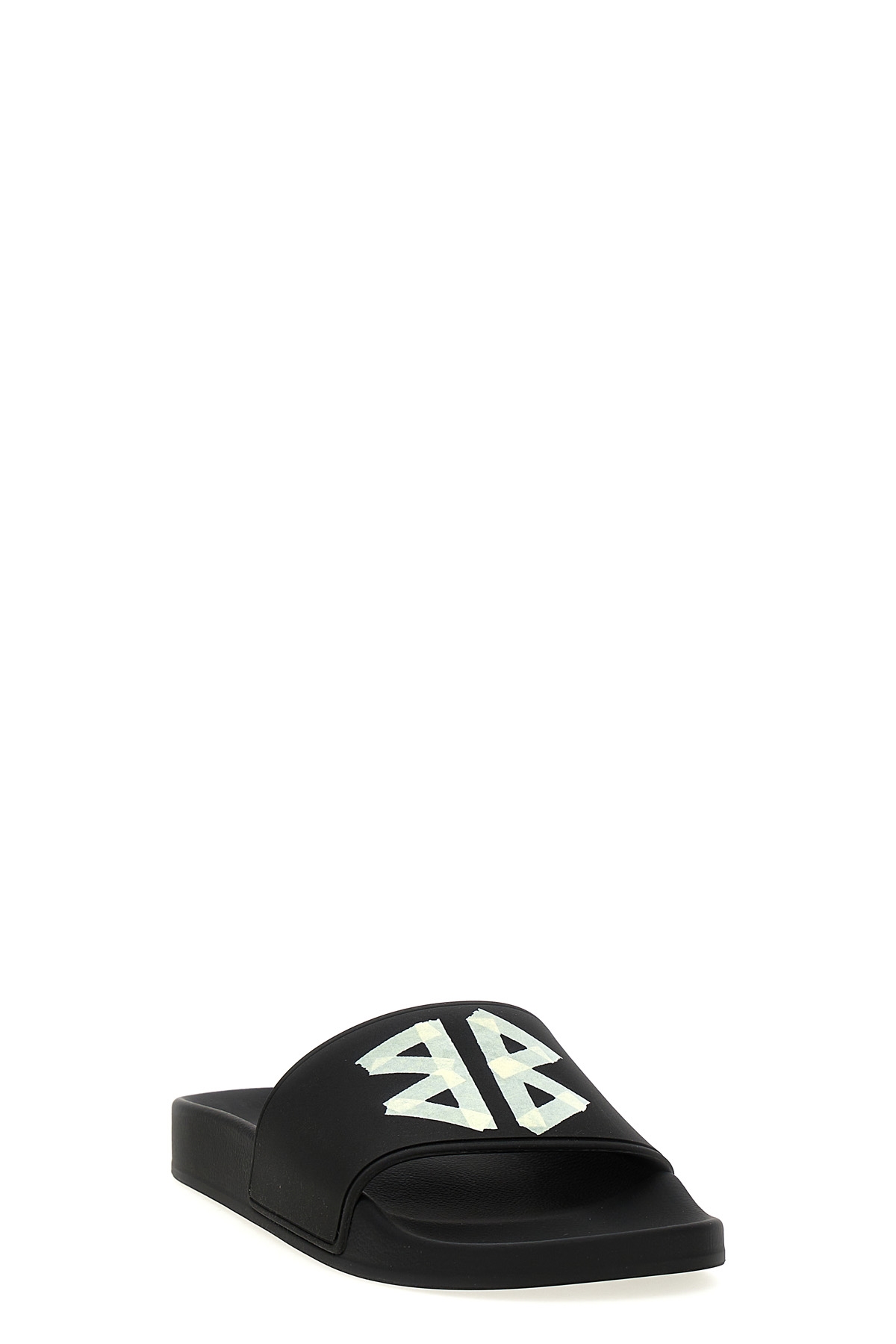 'Pool Slide' rubber sandals with 'Tape Type' logo on the front.