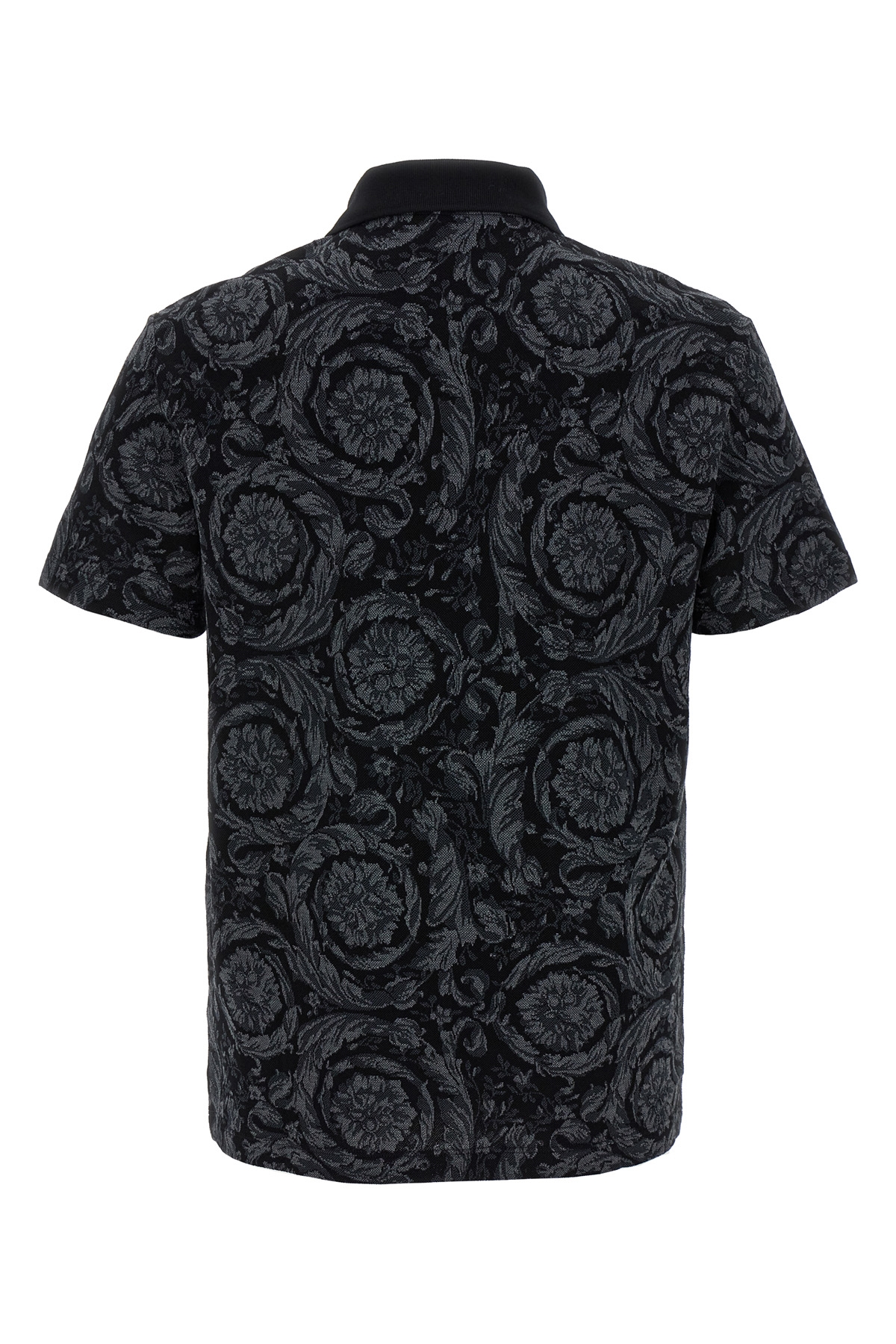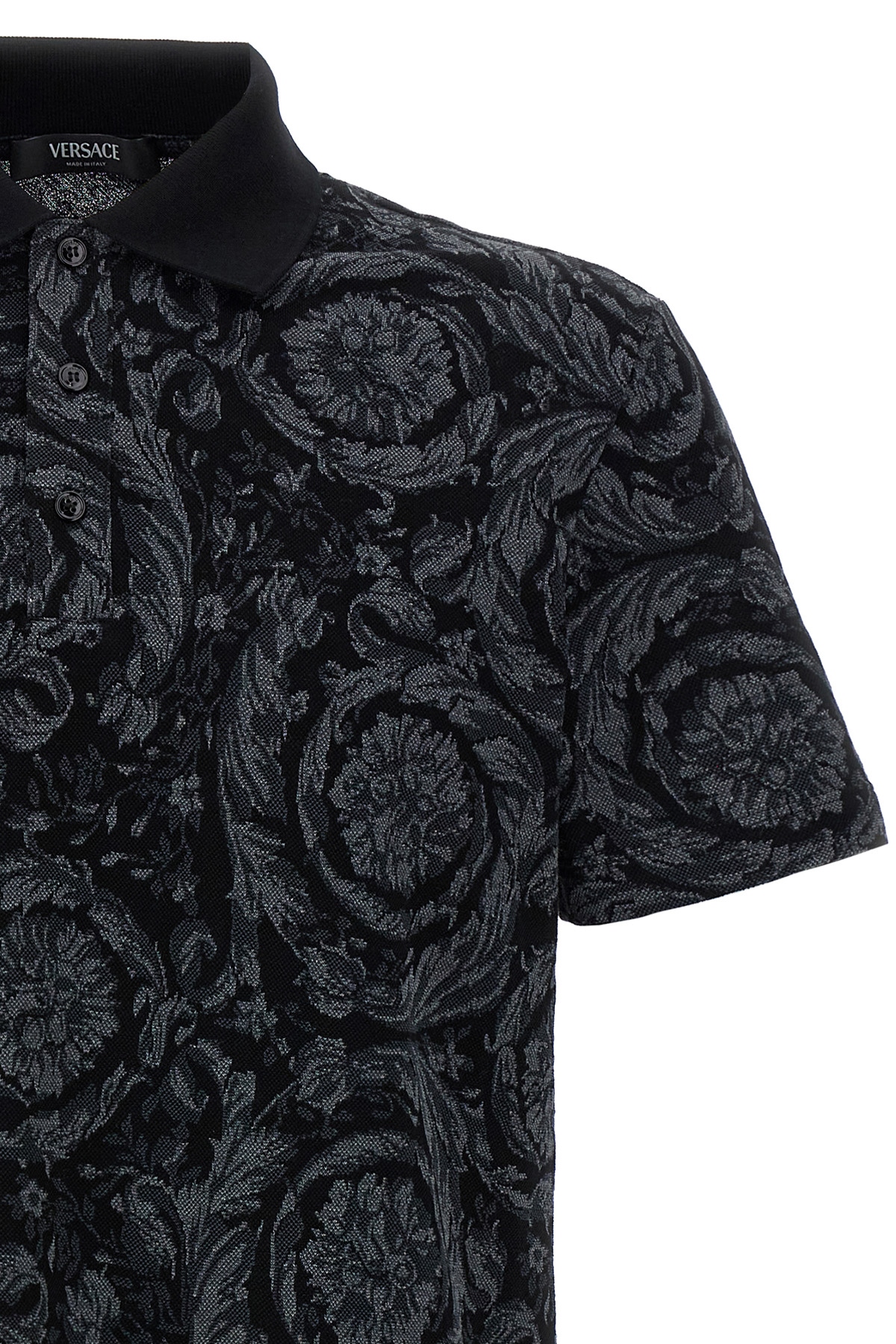 Polo shirt in Baroque jacquard cotton pique with solid collar and buttons, short sleeves.