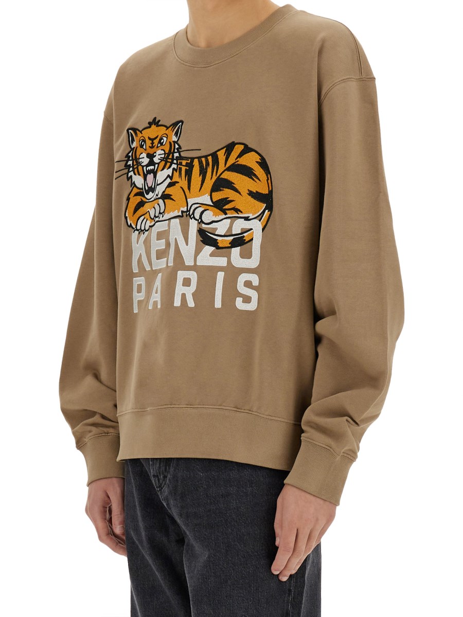 > 코튼 HAPPY 타이거 자수 스웨트 셔츠