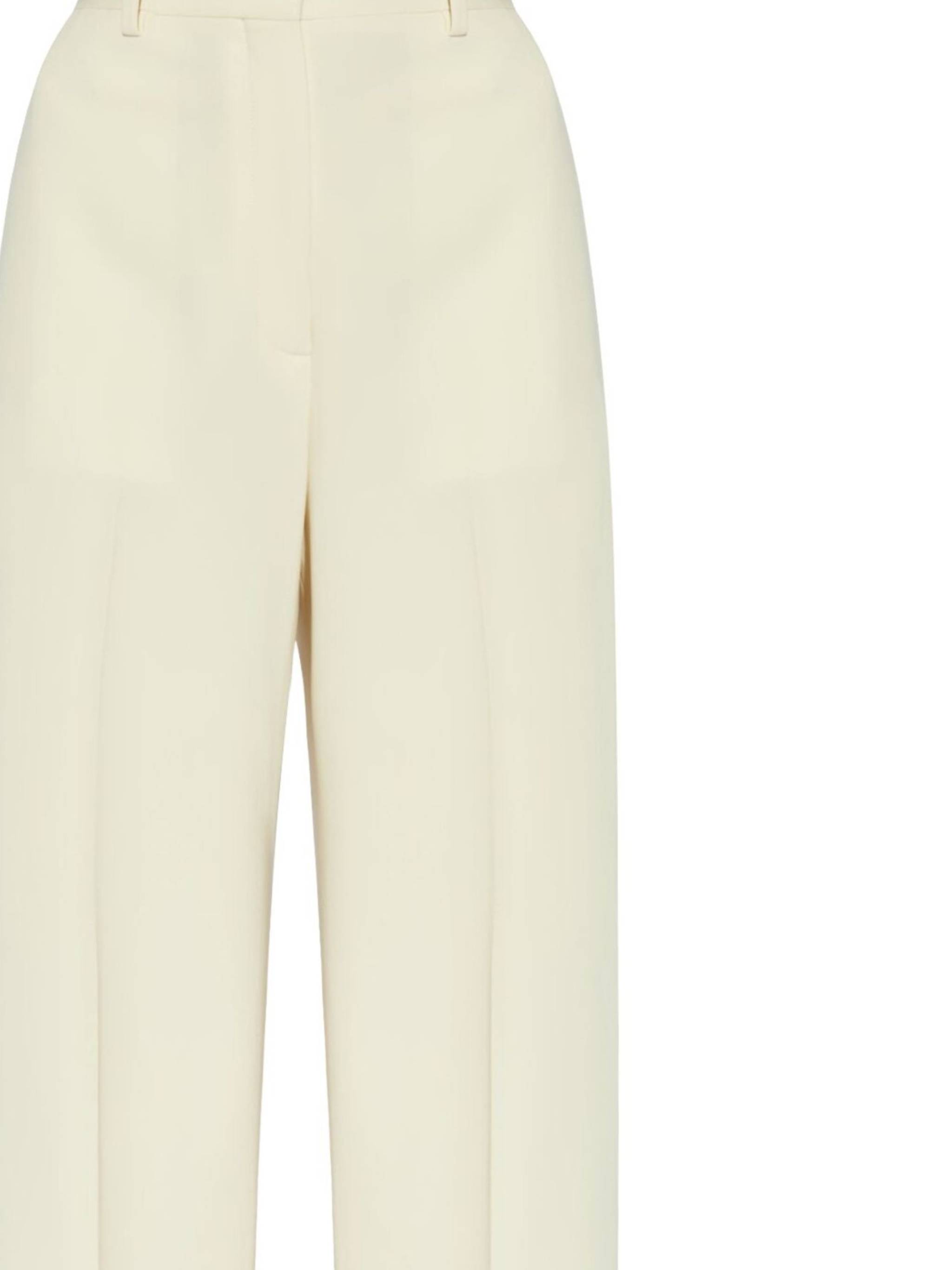 offwhite concealed front fastening slip pockets to the sides two rear welt pockets pleat detailing
