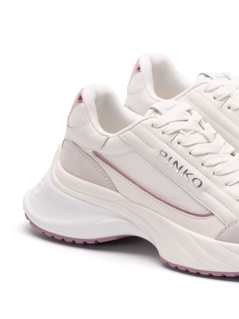 light pink front laceup fastening branded heel counter logo print to the side logo patch at the tongue