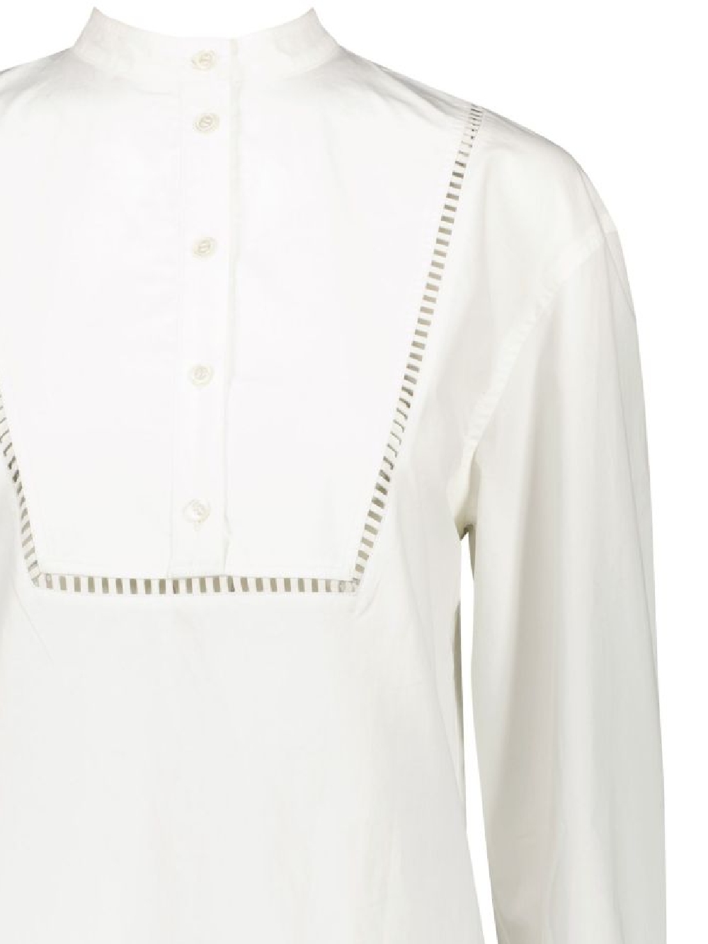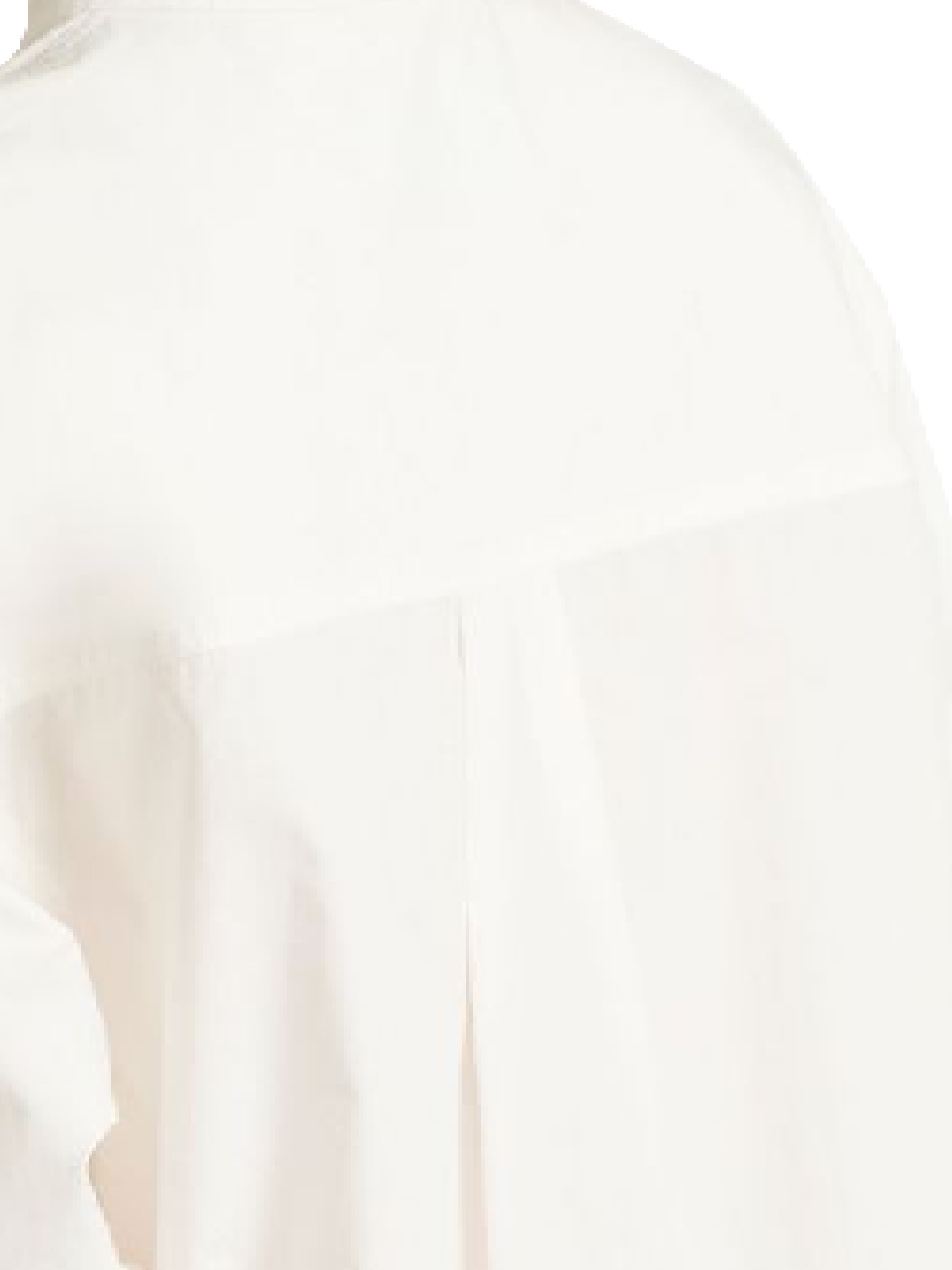 White short front button fastening buttonedcuff sleeves standup collar boxpleat detail