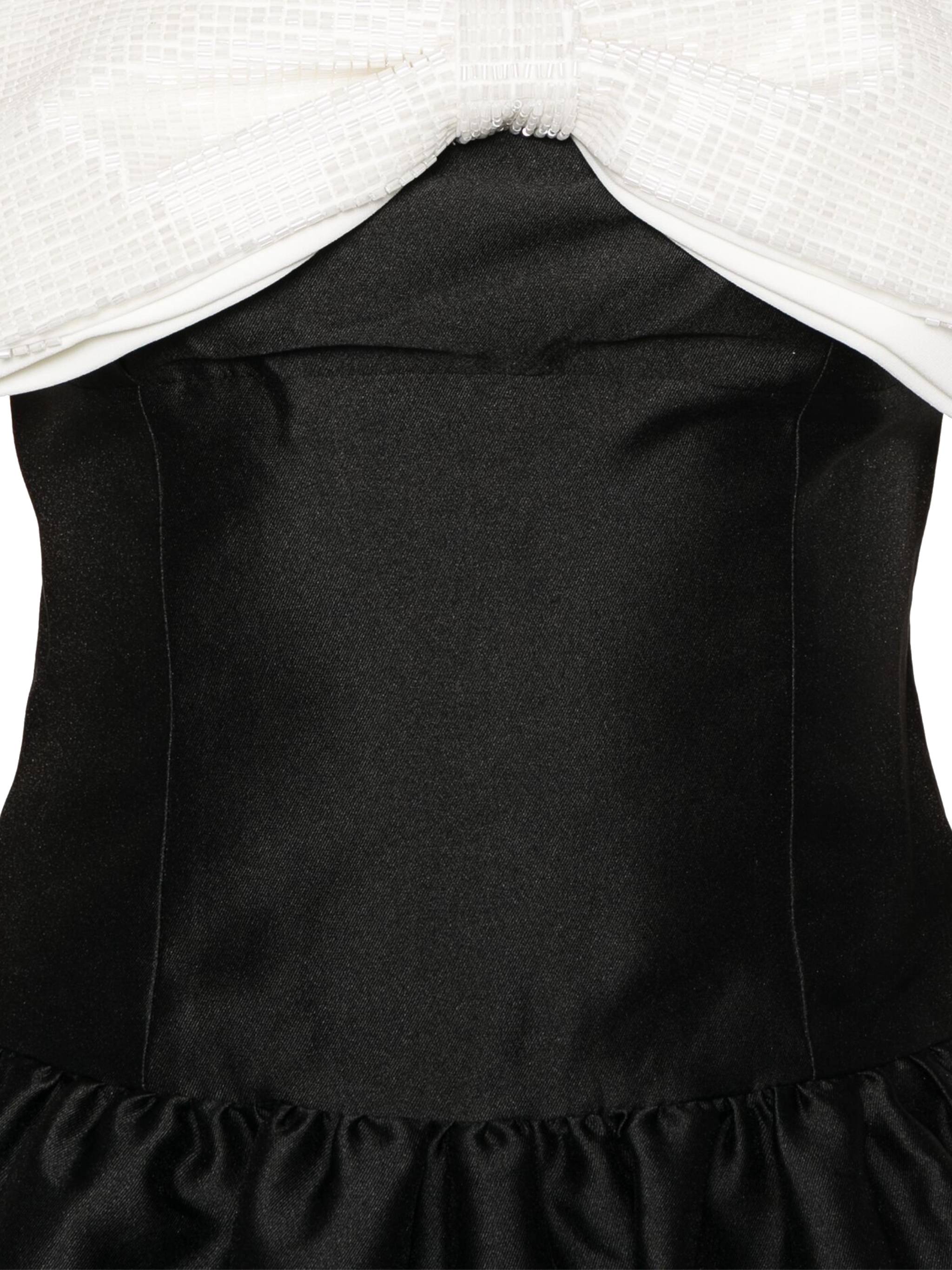 Black concealed rear hook and zip fastening strapless adjustable detachable shoulder strap two side inset pockets