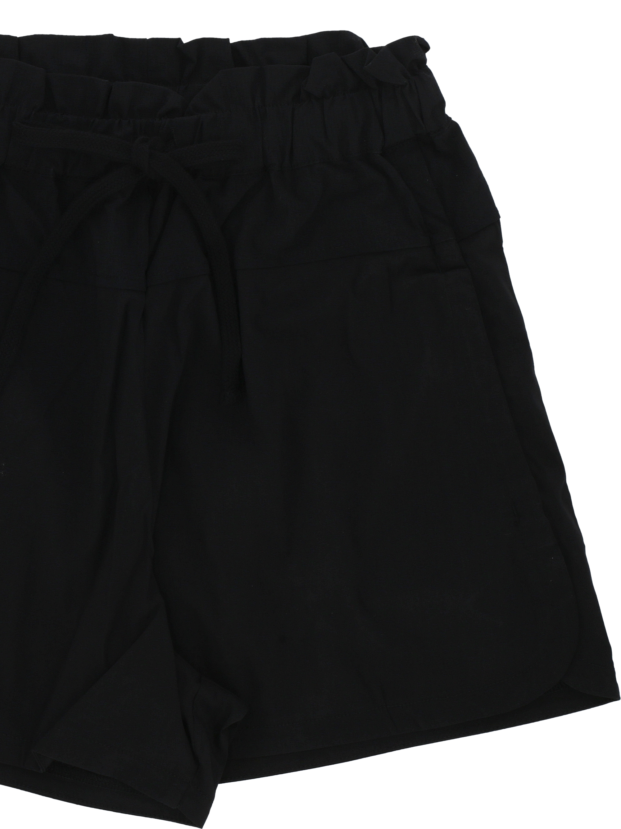 black elasticated drawstring waistband two side inset pockets short side slits