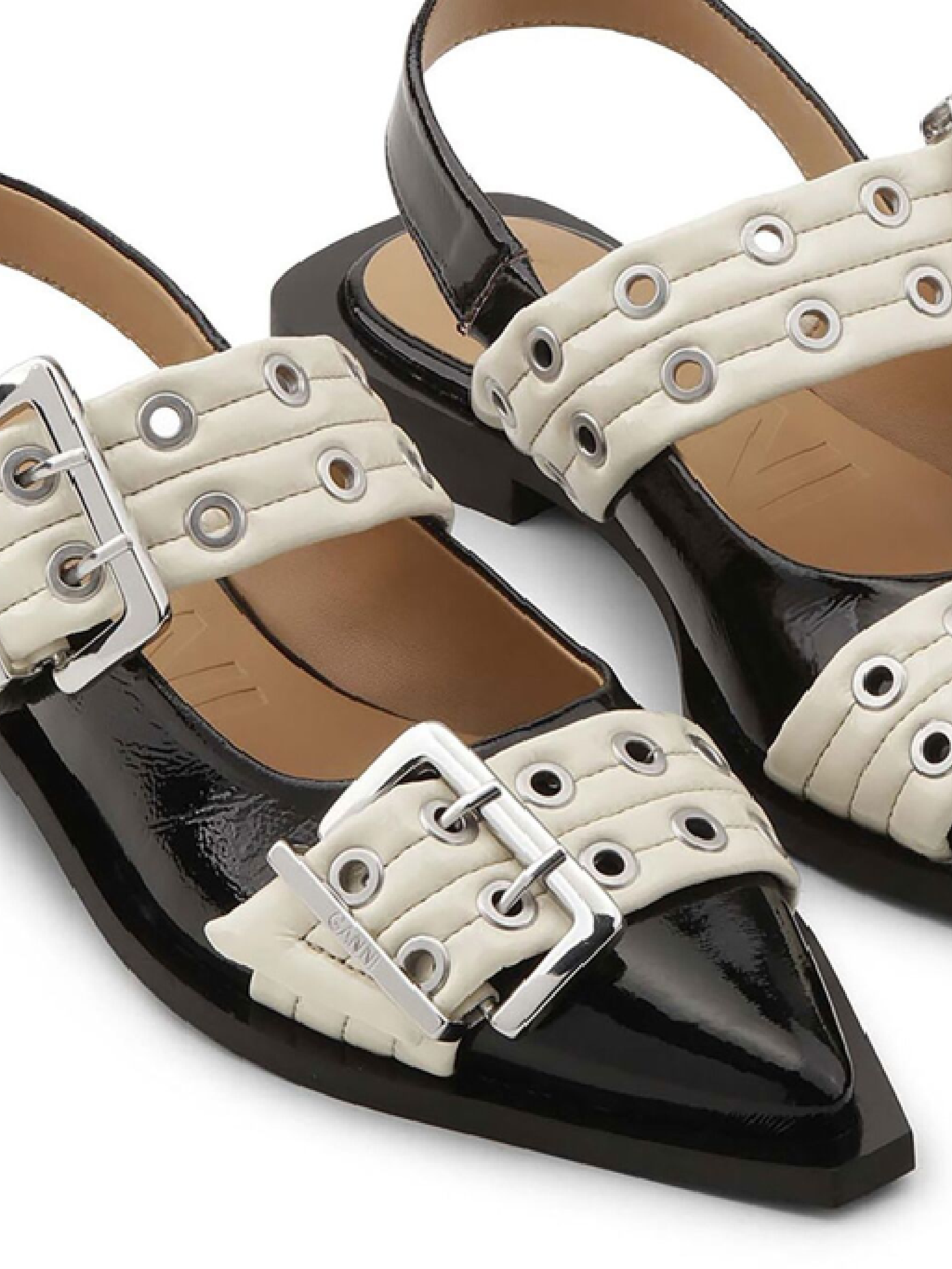 > 블랙 AND OFFWHITE FEMININE 버클 발레리나