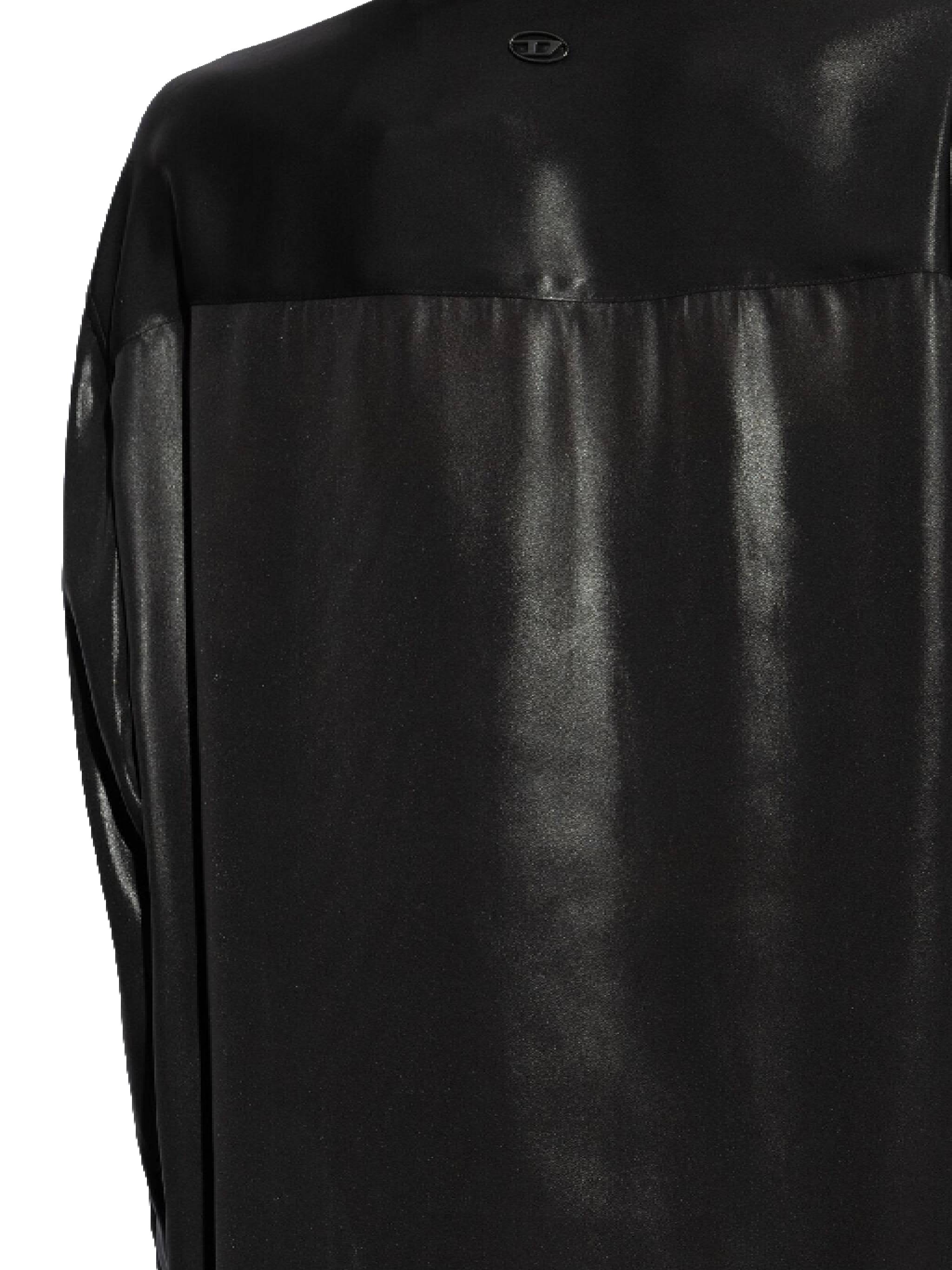 black front button fastening buttoned cuffs rear curved hem drop shoulder