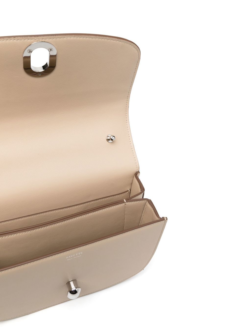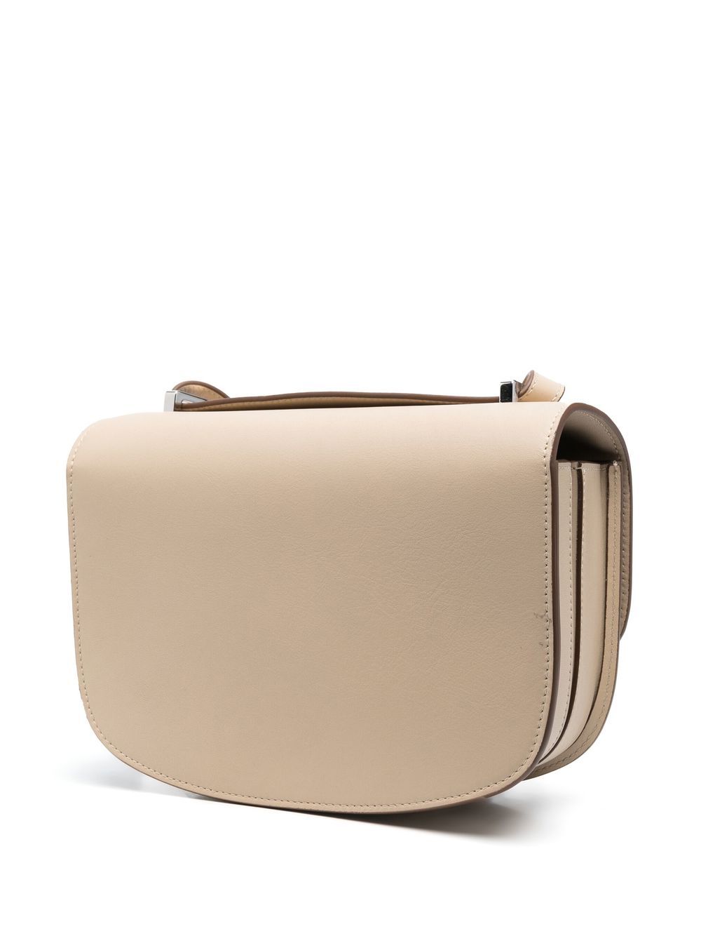 light beige foldover top clasp fastening adjustable shoulder strap partitioned compartment