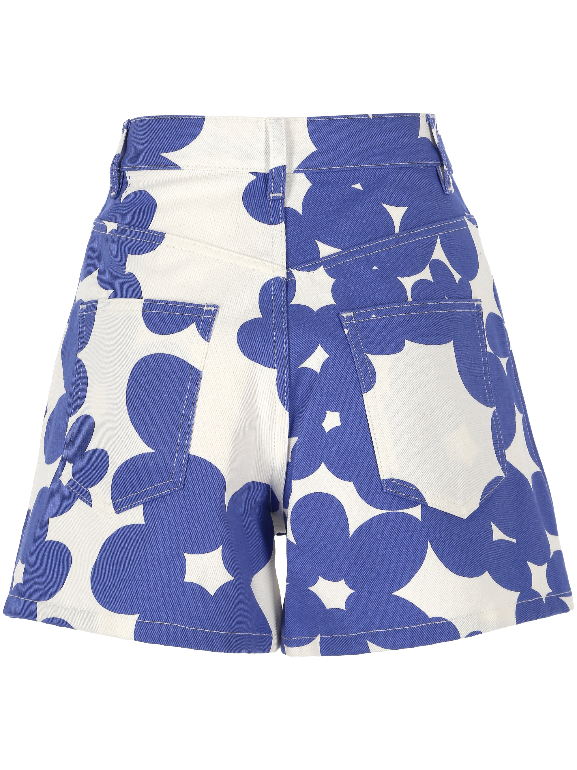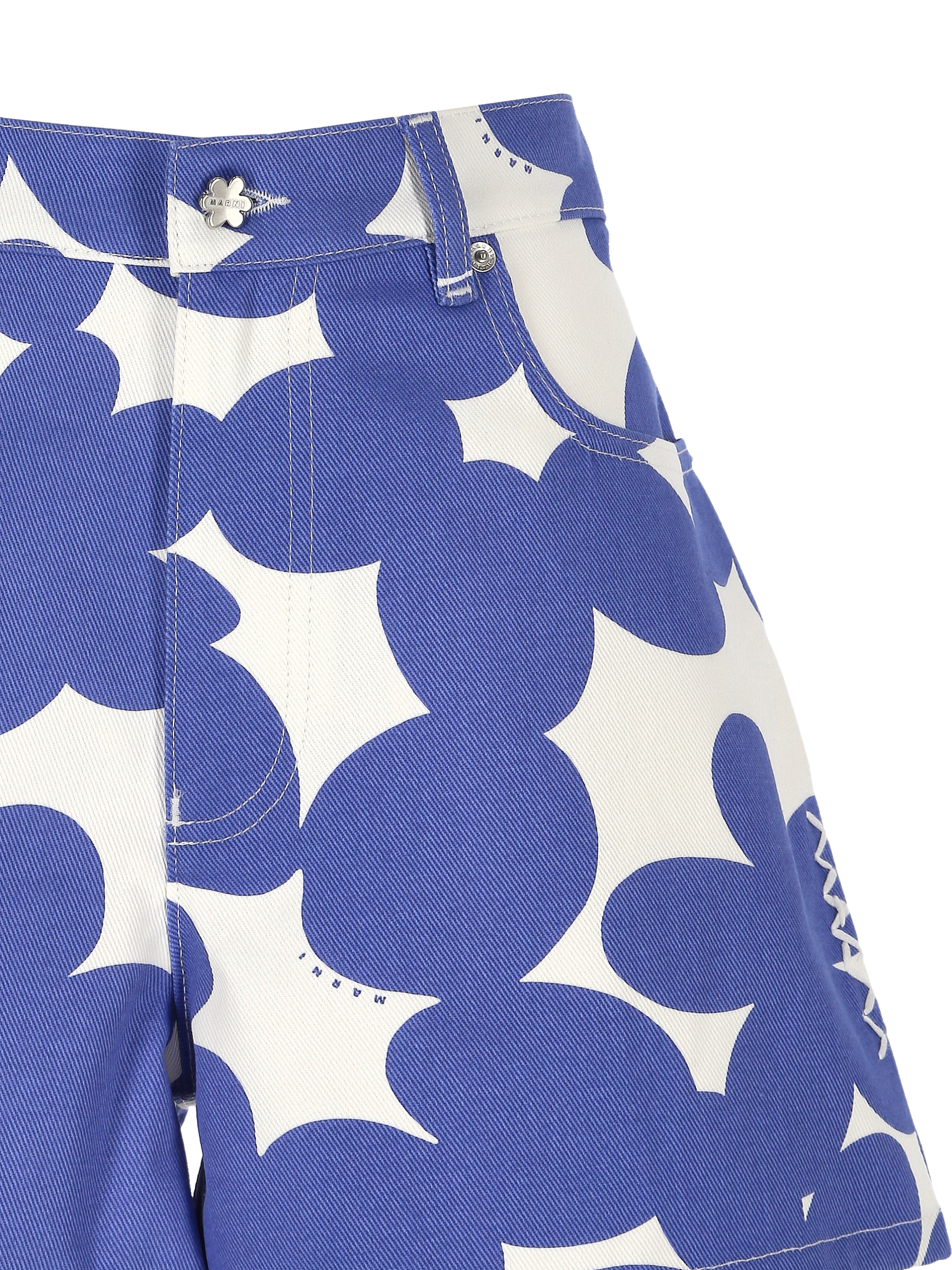 Cobalt blue front button and zip fastening belt loops classic five pockets allover floral print