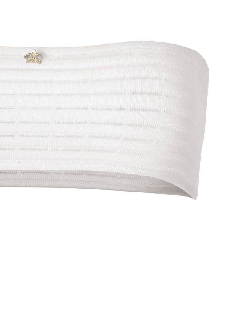 The mesh workmanship gives a sophisticated and sensual effect revealing the skin with a touch of refined lightness The strapless design enhances the decollete while the viscose fabric delicately wraps the bust ensuring comfort and style at all times