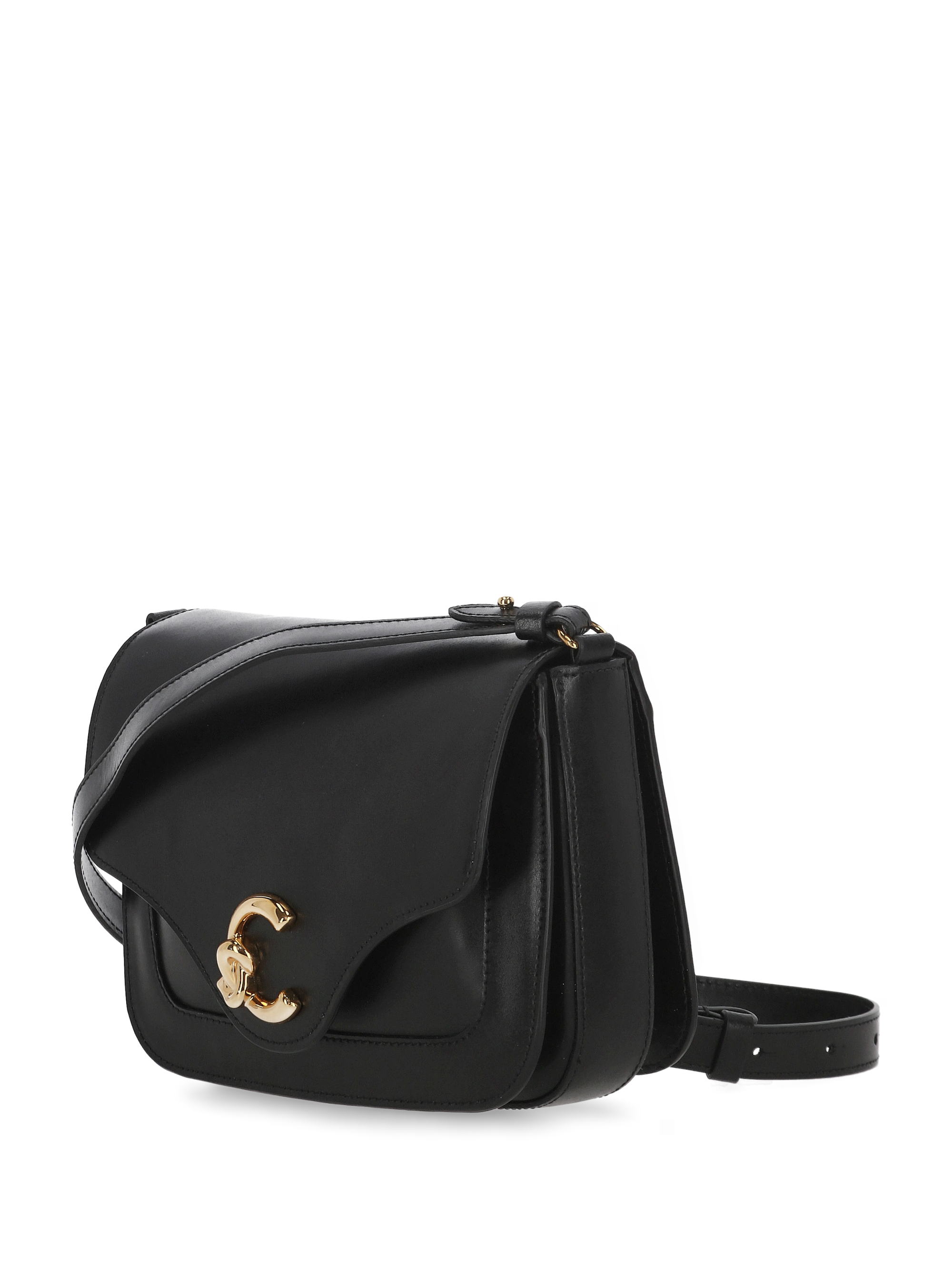 black foldover top with magnetic fastening adjustable detachable shoulder strap slip pocket to the front This piece comes complete with a protective dust bag