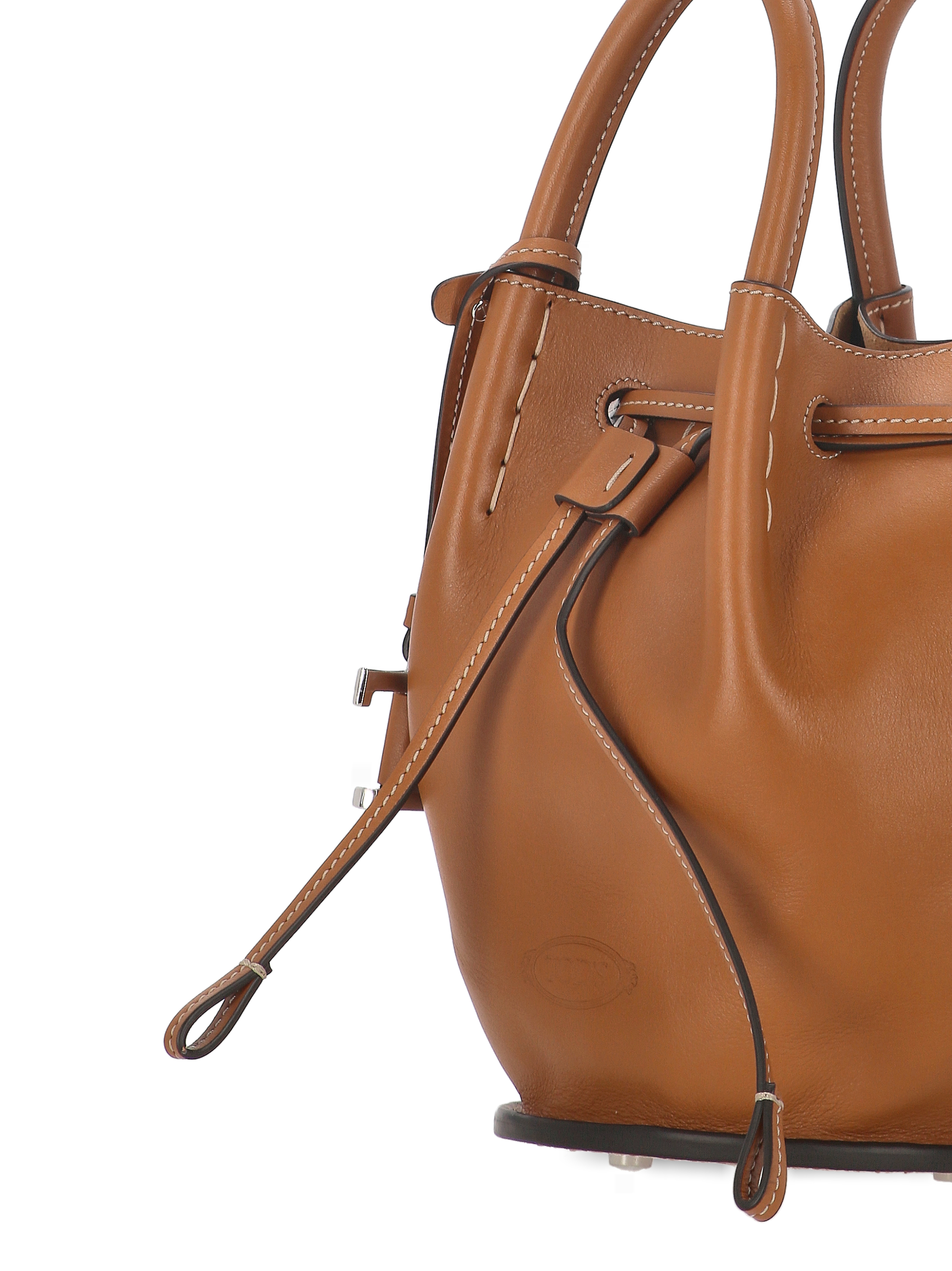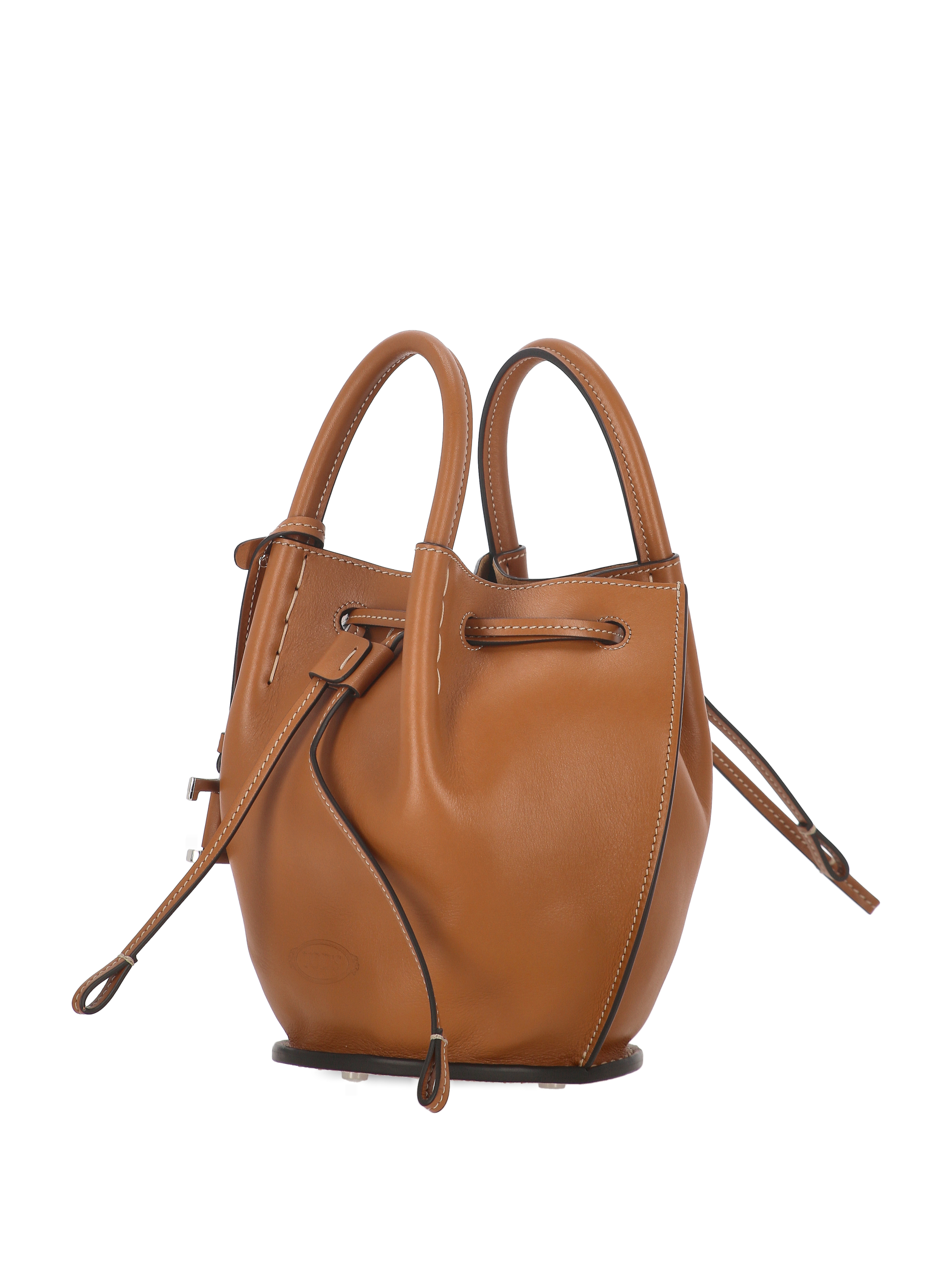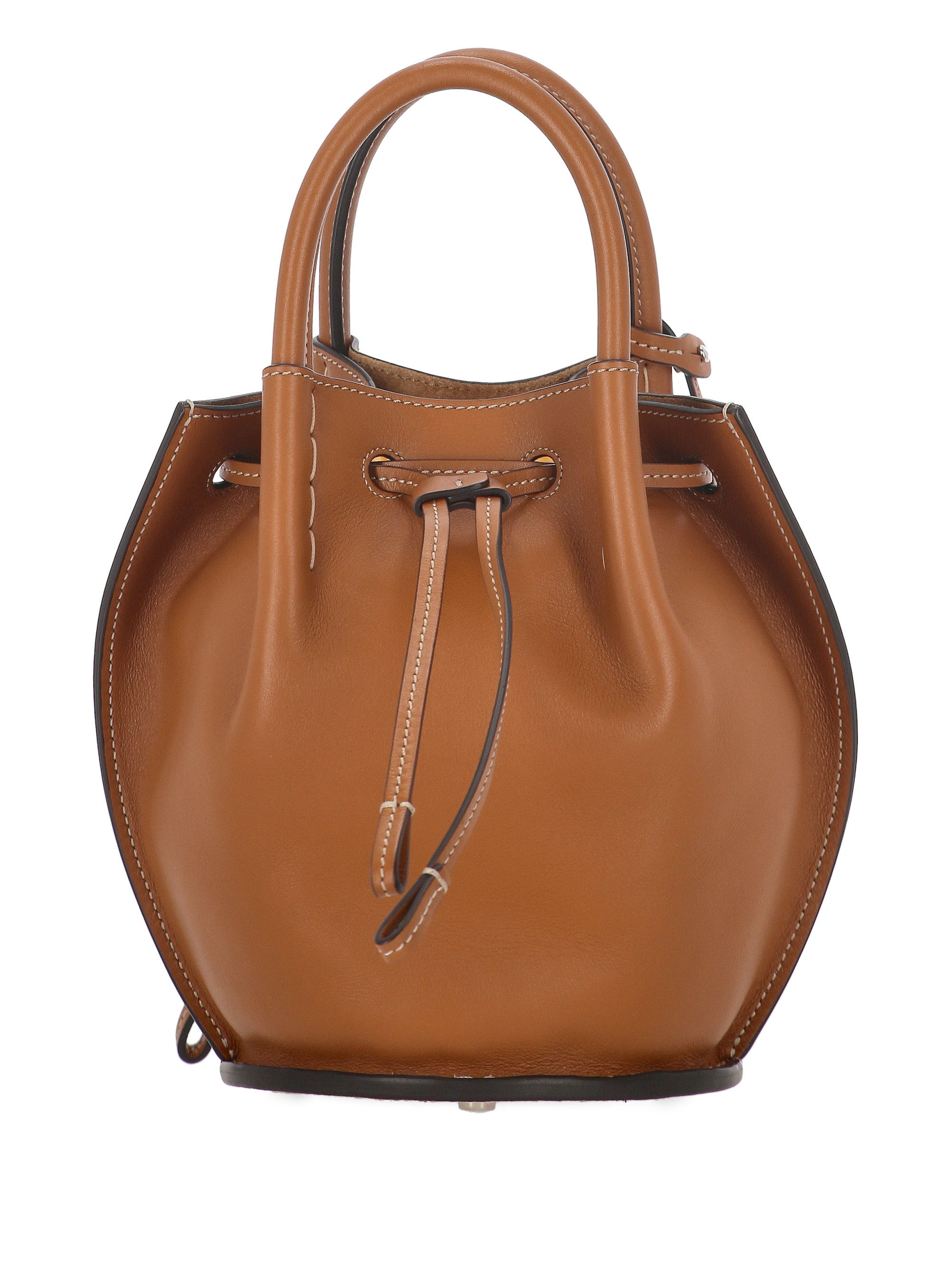Camel brown top drawstring fastening two rolled top handles adjustable detachable shoulder strap
