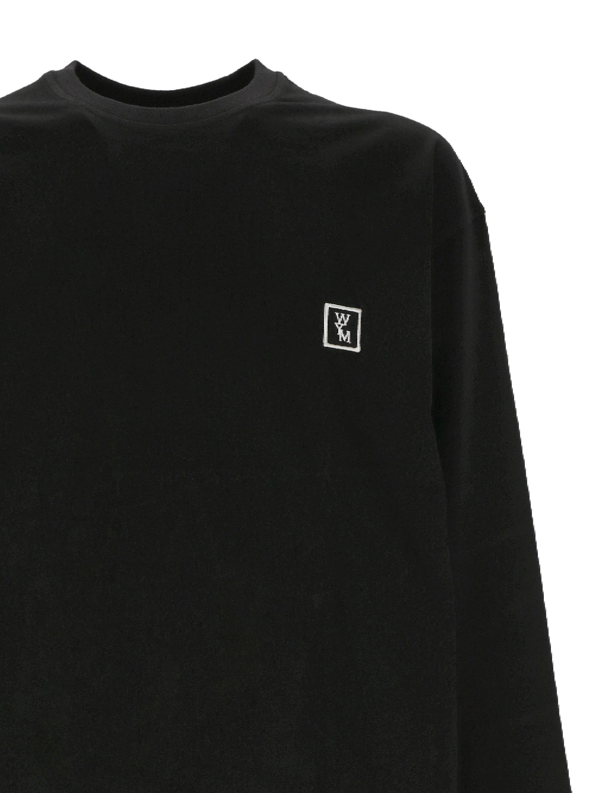 black cotton jersey texture crew neck drop shoulder long sleeves embroidered logo at the chest logo print to the rear straight hem