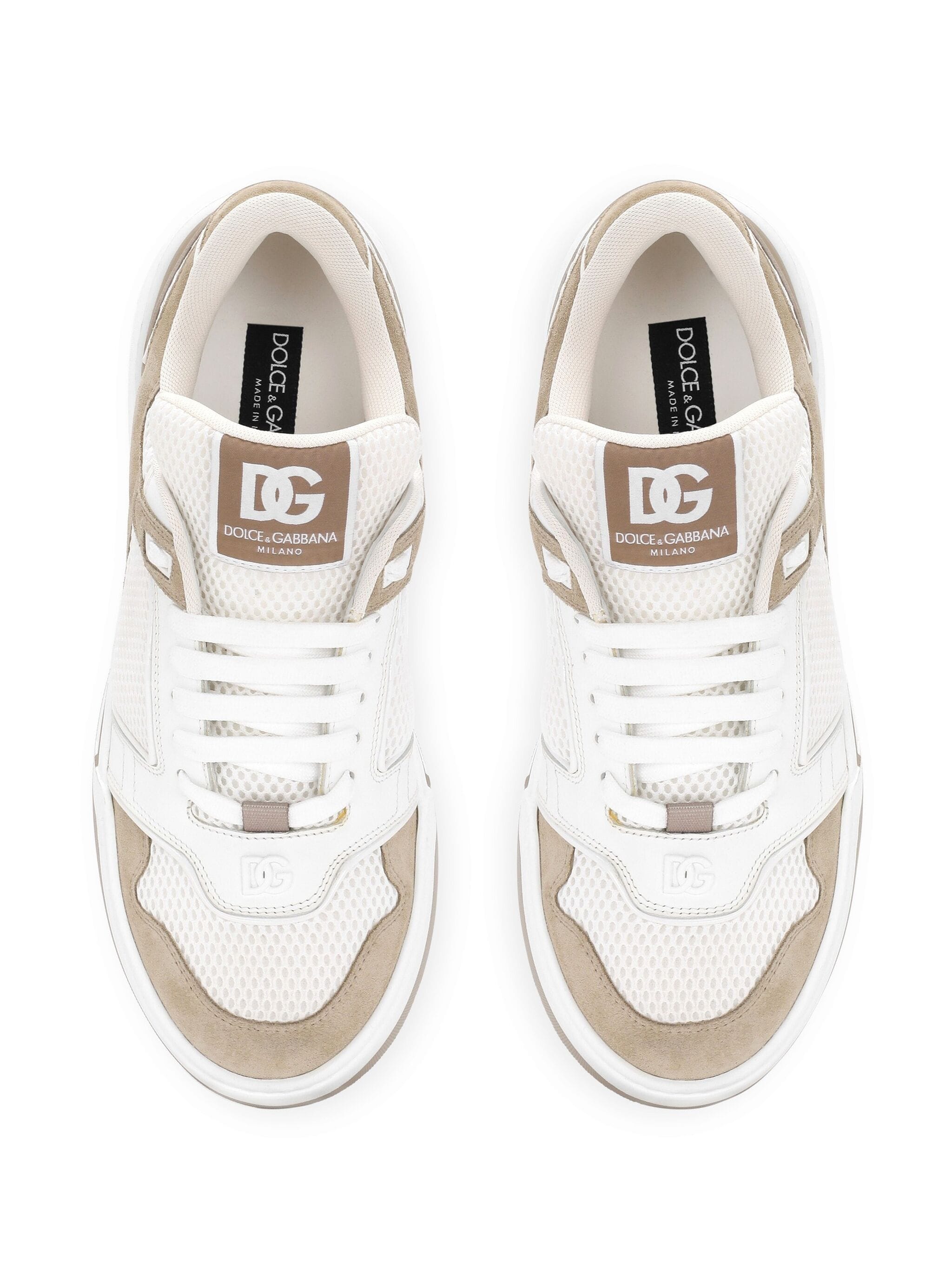 beigewhite leather trim suede trim mesh panelling logo patch at the tongue logo lettering round toe front laceup fastening branded insole flat rubber sole