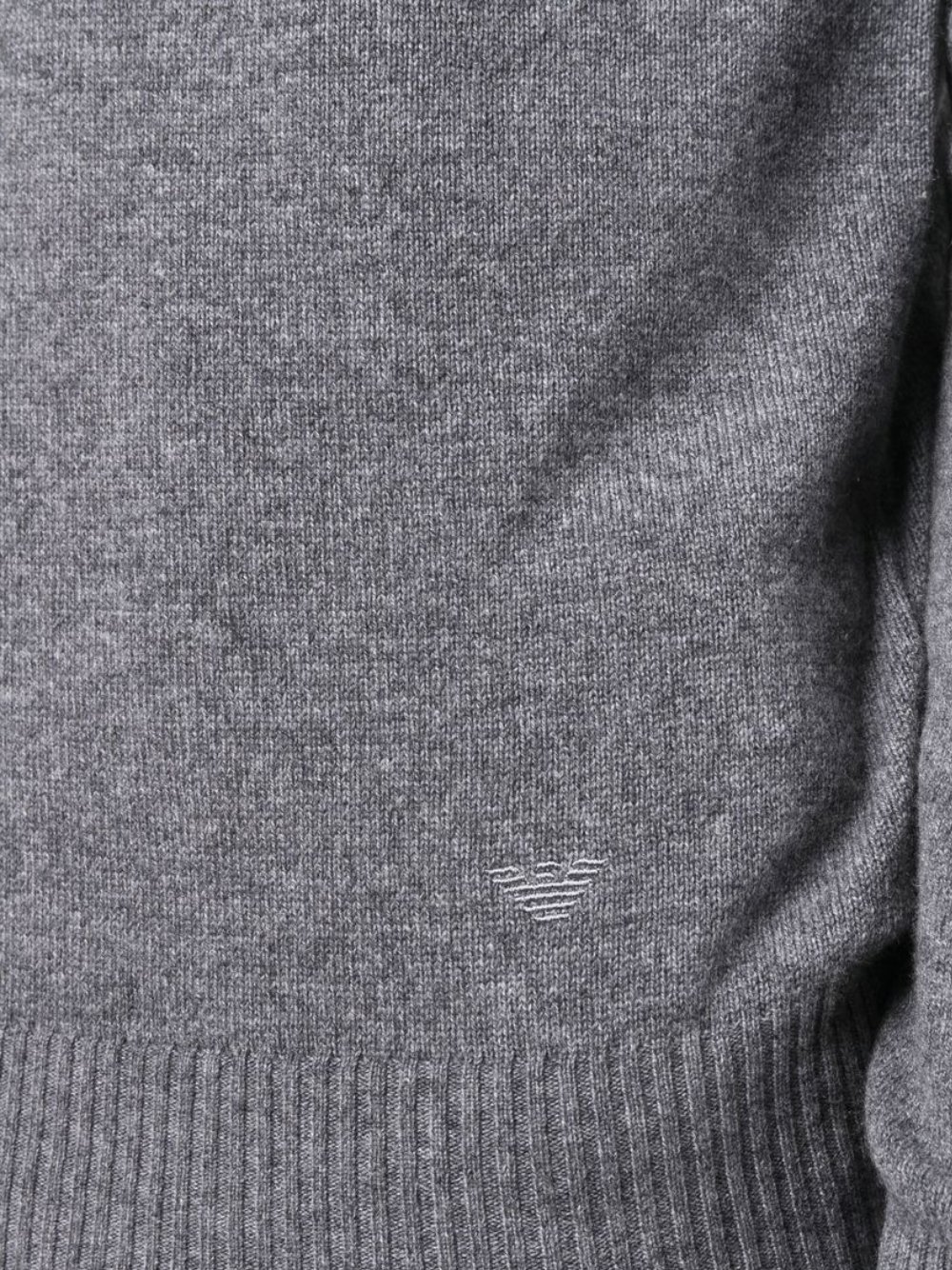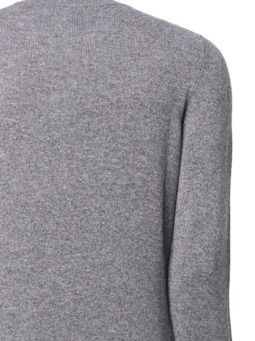 grey cashmere fine knit ribbed trim long sleeves crew neck straight hem
