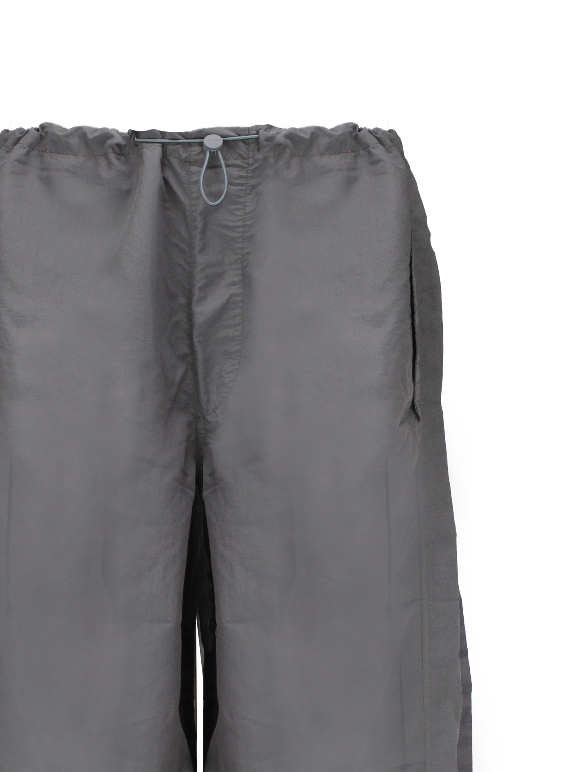 Unisex oversized parachute trousers with functional pockets drawstring at the waist and ankles to customize the fitThe model is made of gray nylon and is personalized with the Autry logo printed on the front