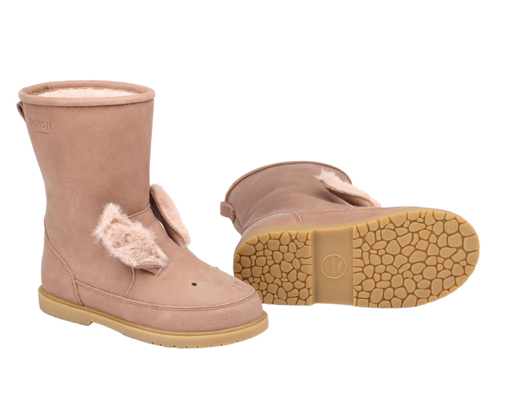 light brown leathershearling embossed logo to the side round toe slipon style branded insole flat rubber sole
