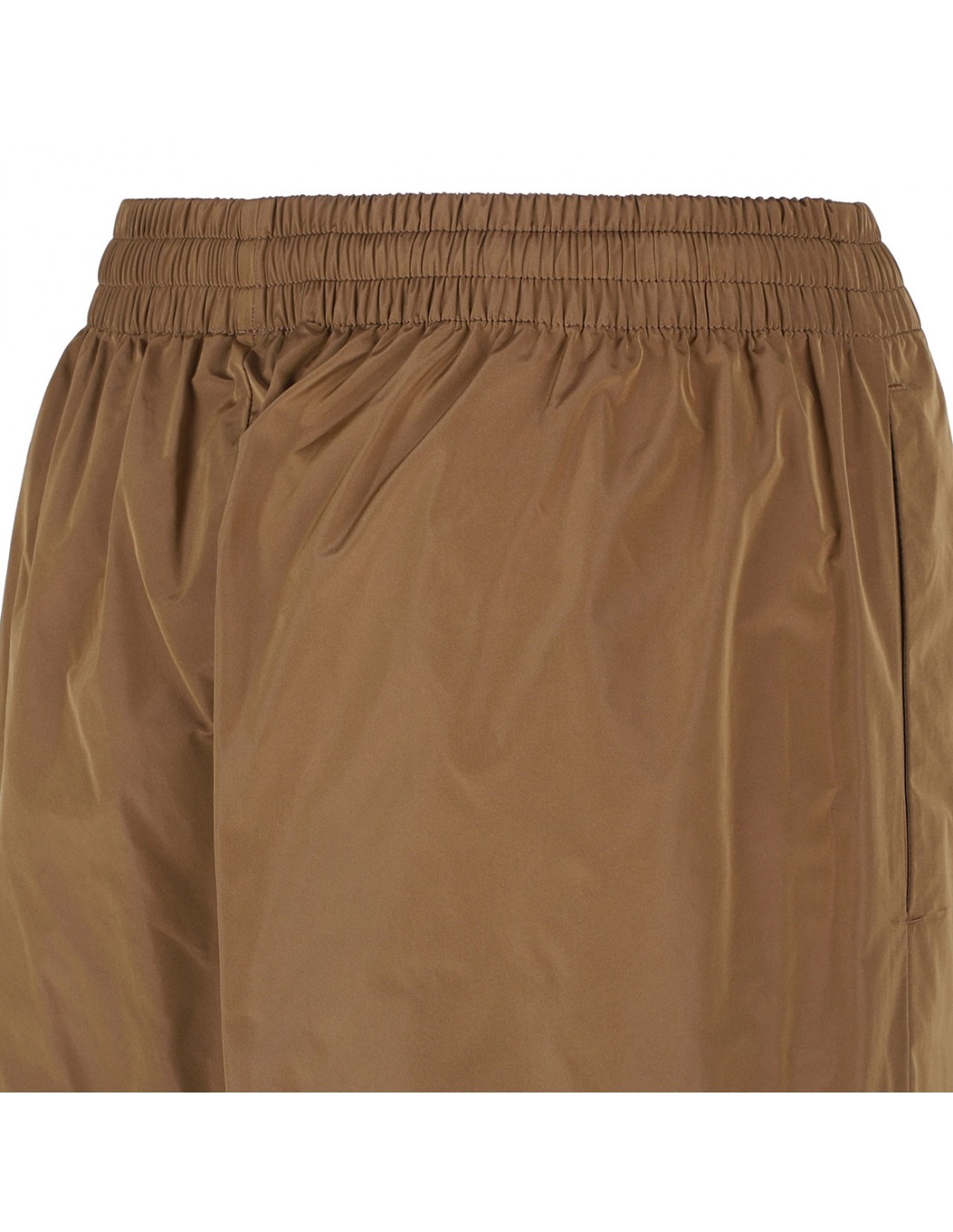 Camel hue techno taffeta cargo pants from Herno featuring water-repellent treatment, slightly shimmering finish, wide legs, elastic waist with drawstring, side functional pockets, cargo pockets down the legs and elastic ankle cuffs.