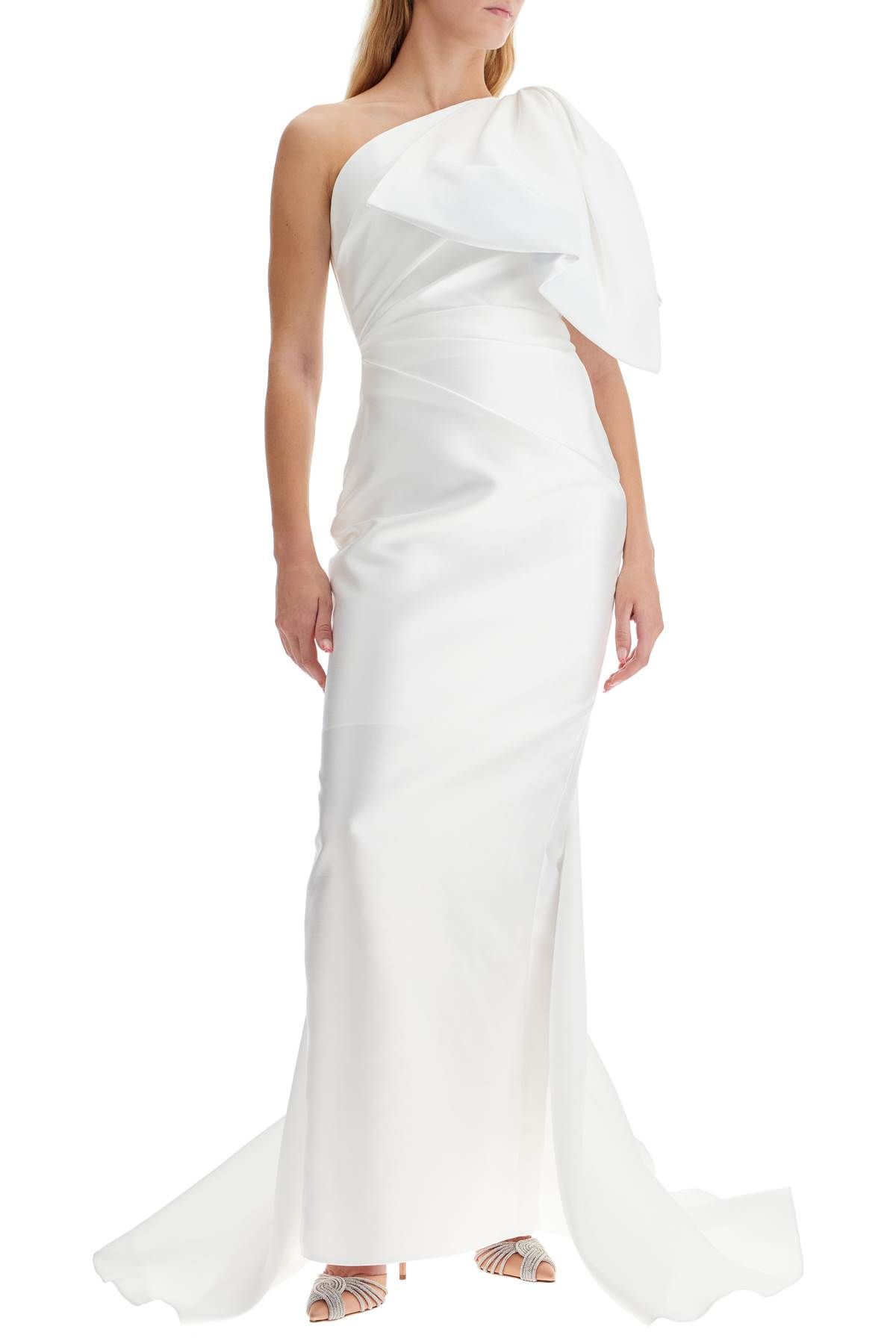 Crafted in technical mikado fabric with front draping, this long dress by Solace London is the perfect combination of glamour and elegance