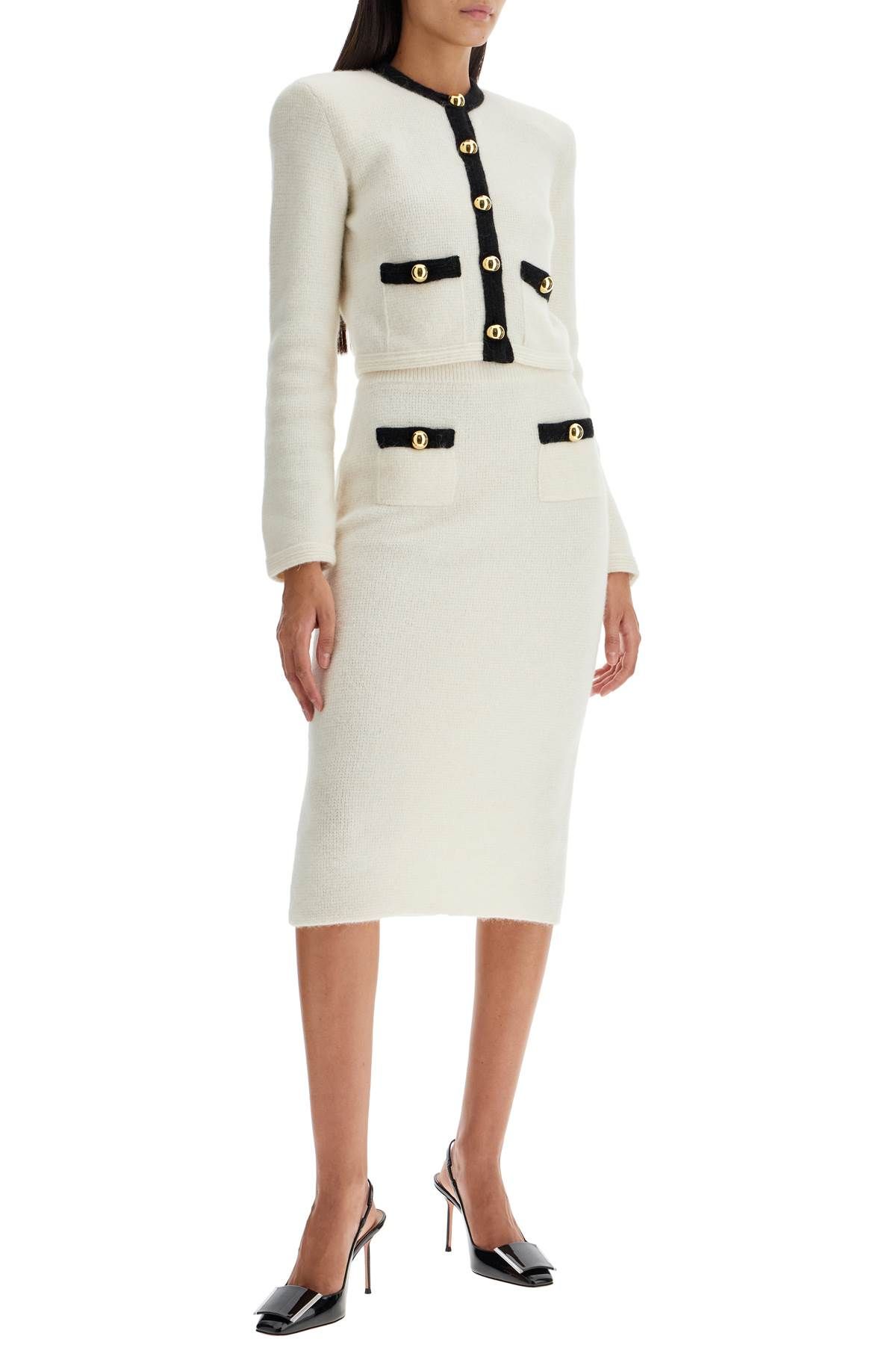 This midi skirt by Alessandra Rich is made of a blend of alpaca and wool, featuring an elasticated waistband and welt pockets with golden buttons