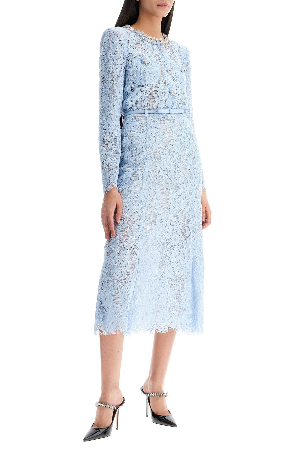 This midi skirt by Self-Portrait is made of floral lace and embellished with small tone-on-tone sequins