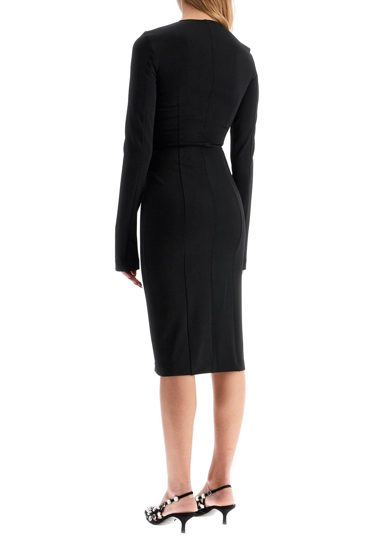 This midi dress from The Attico is made of sablè fabric and features a design with long sleeves and a double front zip closure, one of which has the monogram maxi strap. It has a fitted silhouette and is unlined. The hardware is in silver metal finish. The model is 177 cm tall and wears size IT 40.