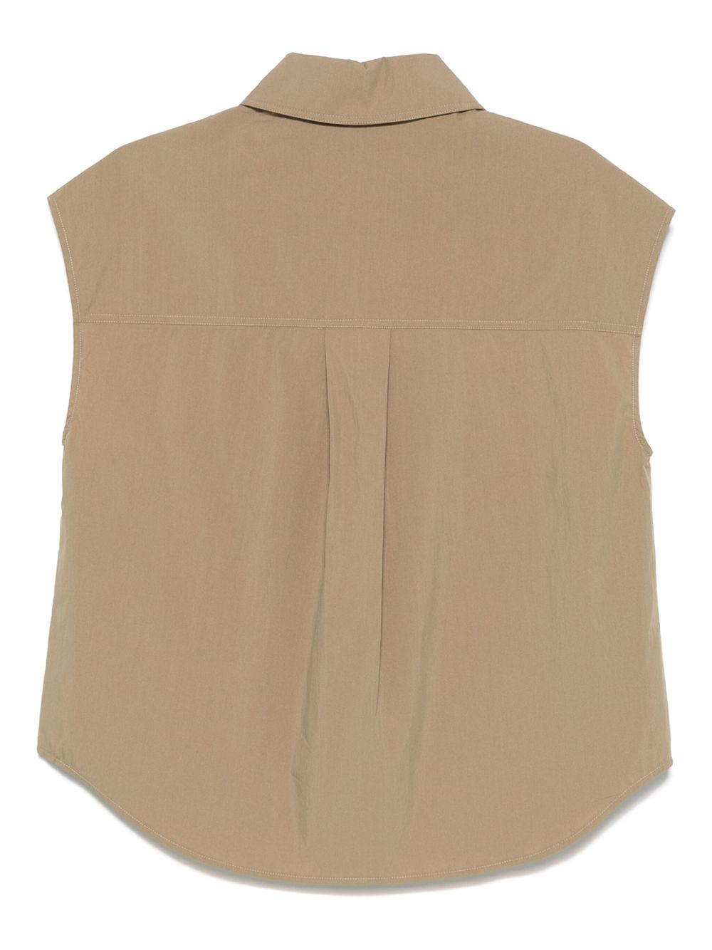 taupe brown front button fastening chest flap pockets embroidered logo at the chest sleeveless
