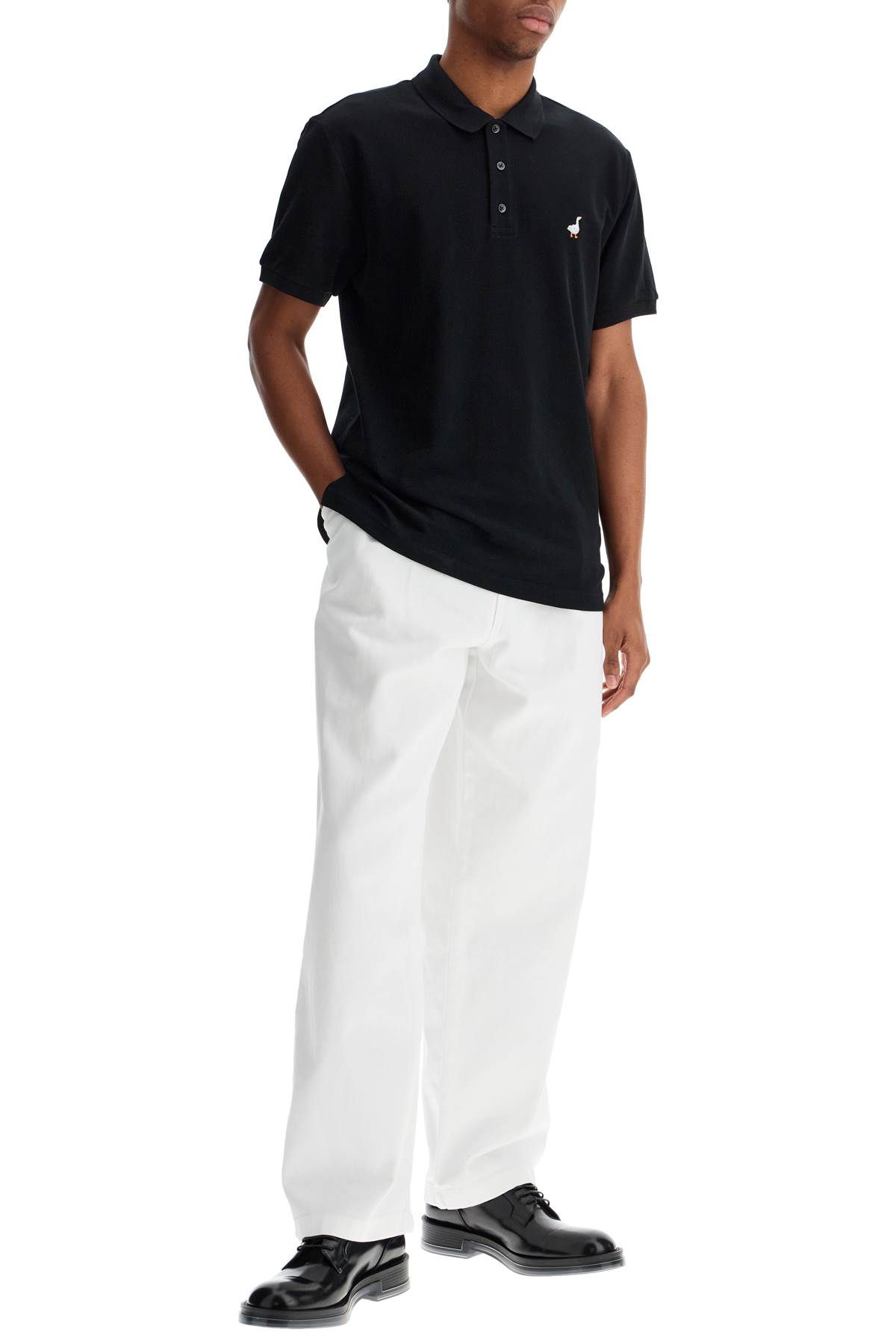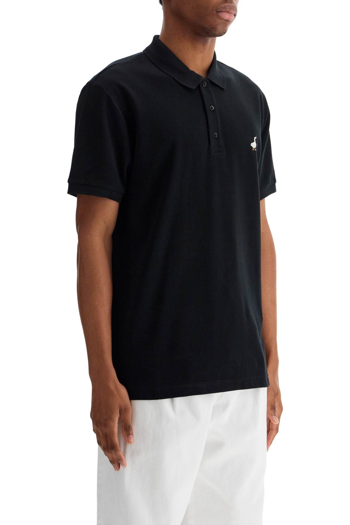 mens 블랙 코튼 폴로 위드 duck 자수