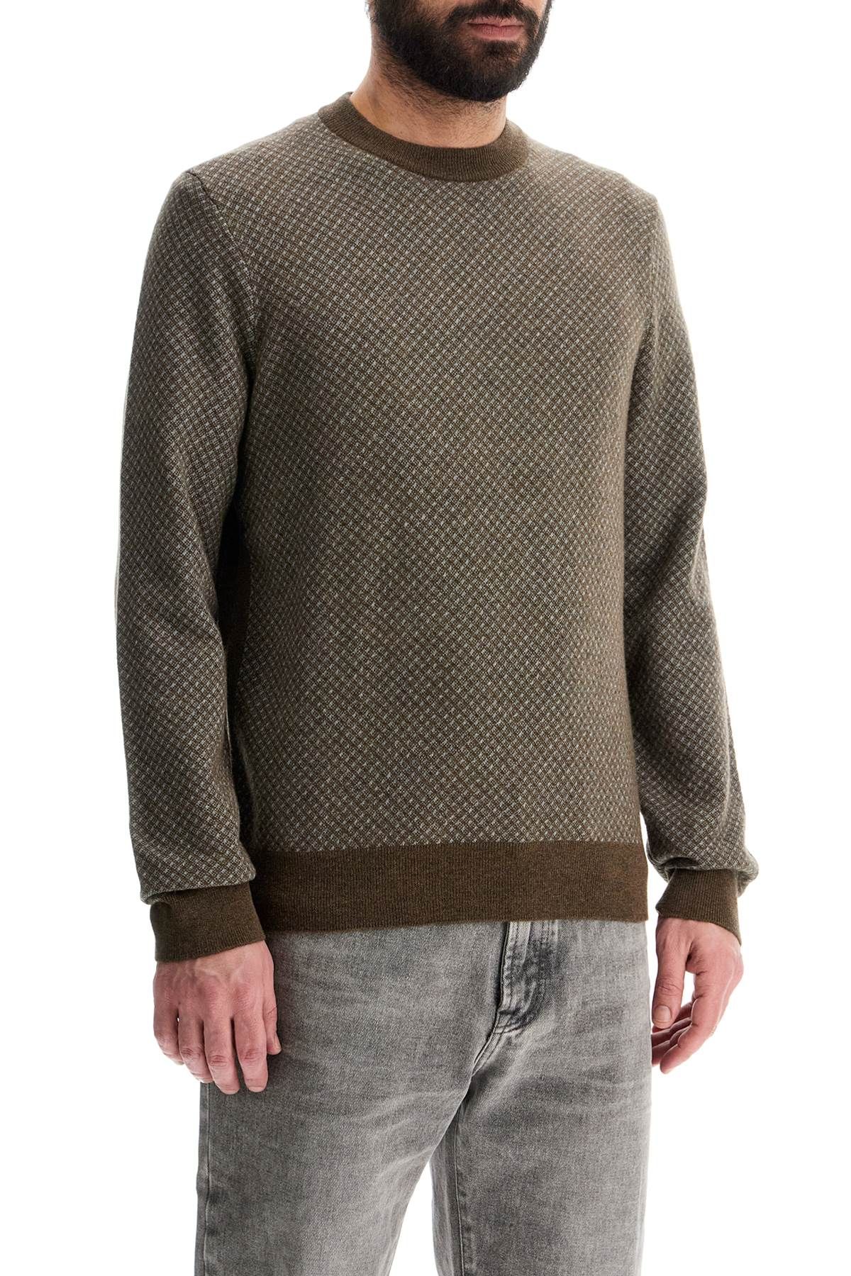 올리브 그린 울 스웨터 위드 라운드 넥 for men