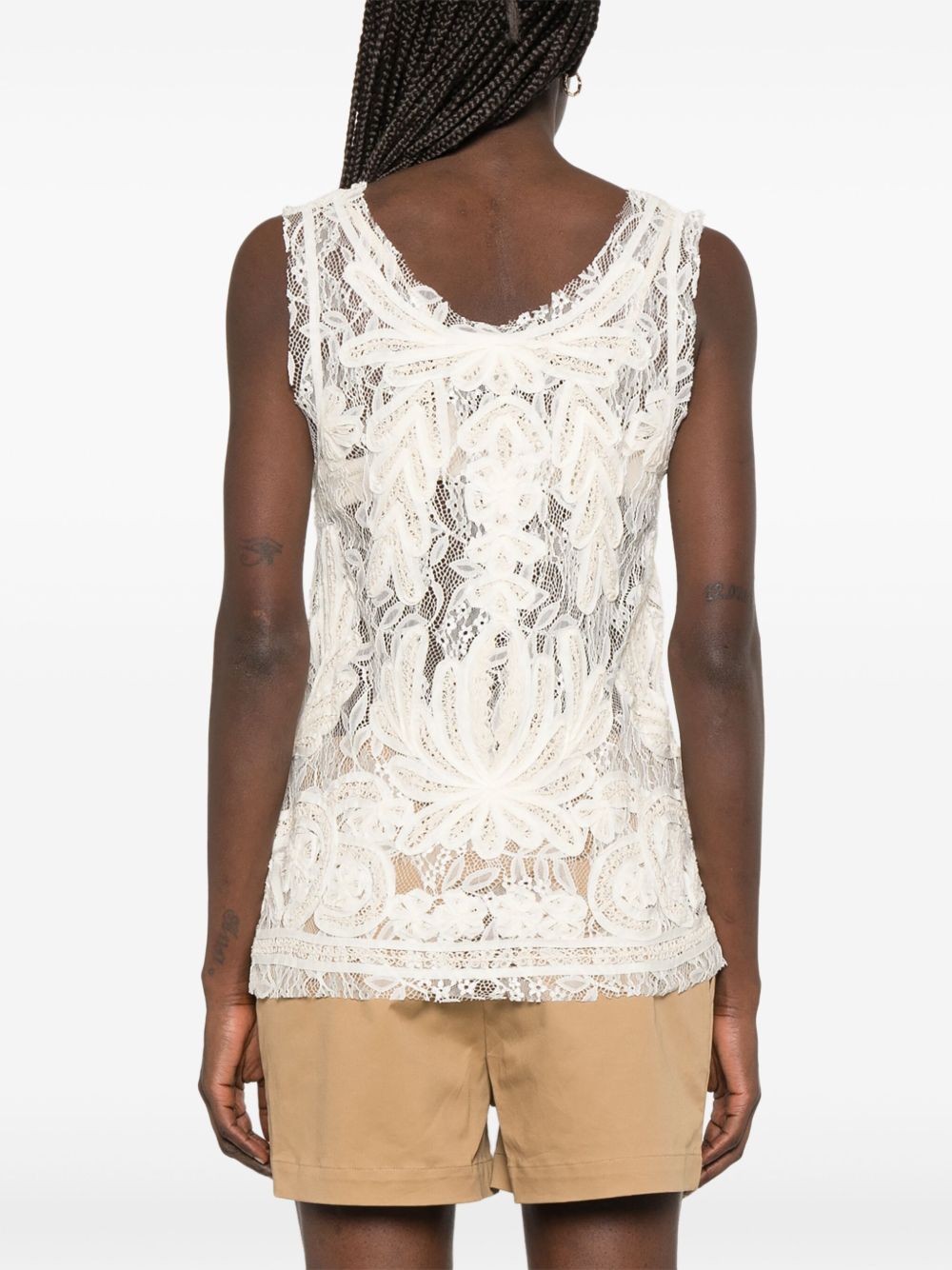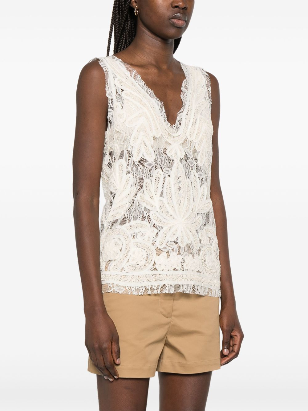 ecru plunging V-neck sleeveless