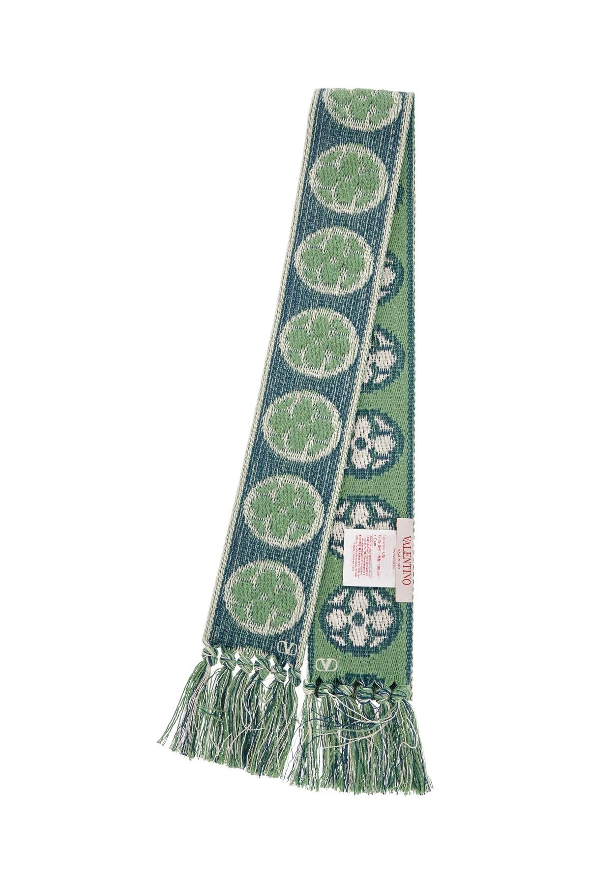 The Valentino Garavani floral scarf offers timeless elegance. Made in Italy with ivory cotton, it features a stylized floral pattern and decorative fringes. Perfect for elevating any outfit with style.