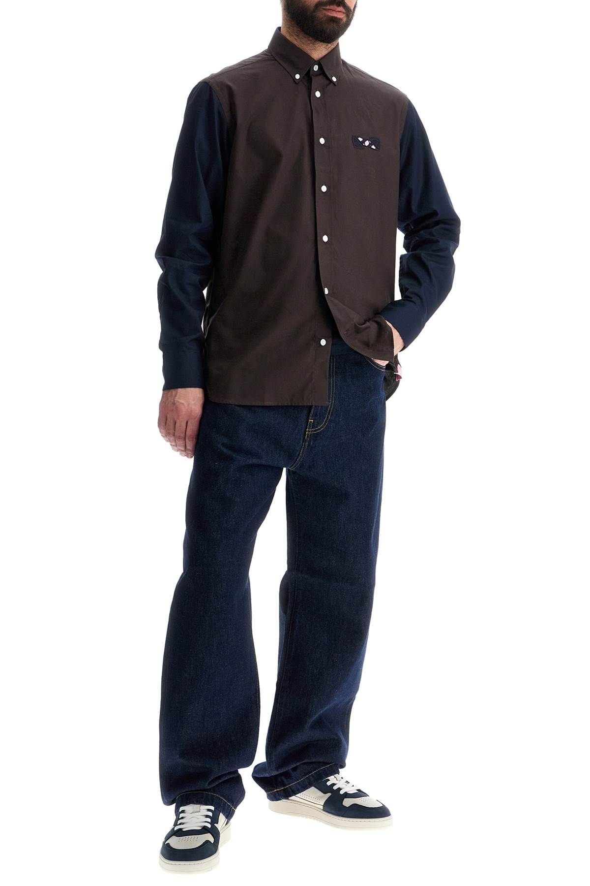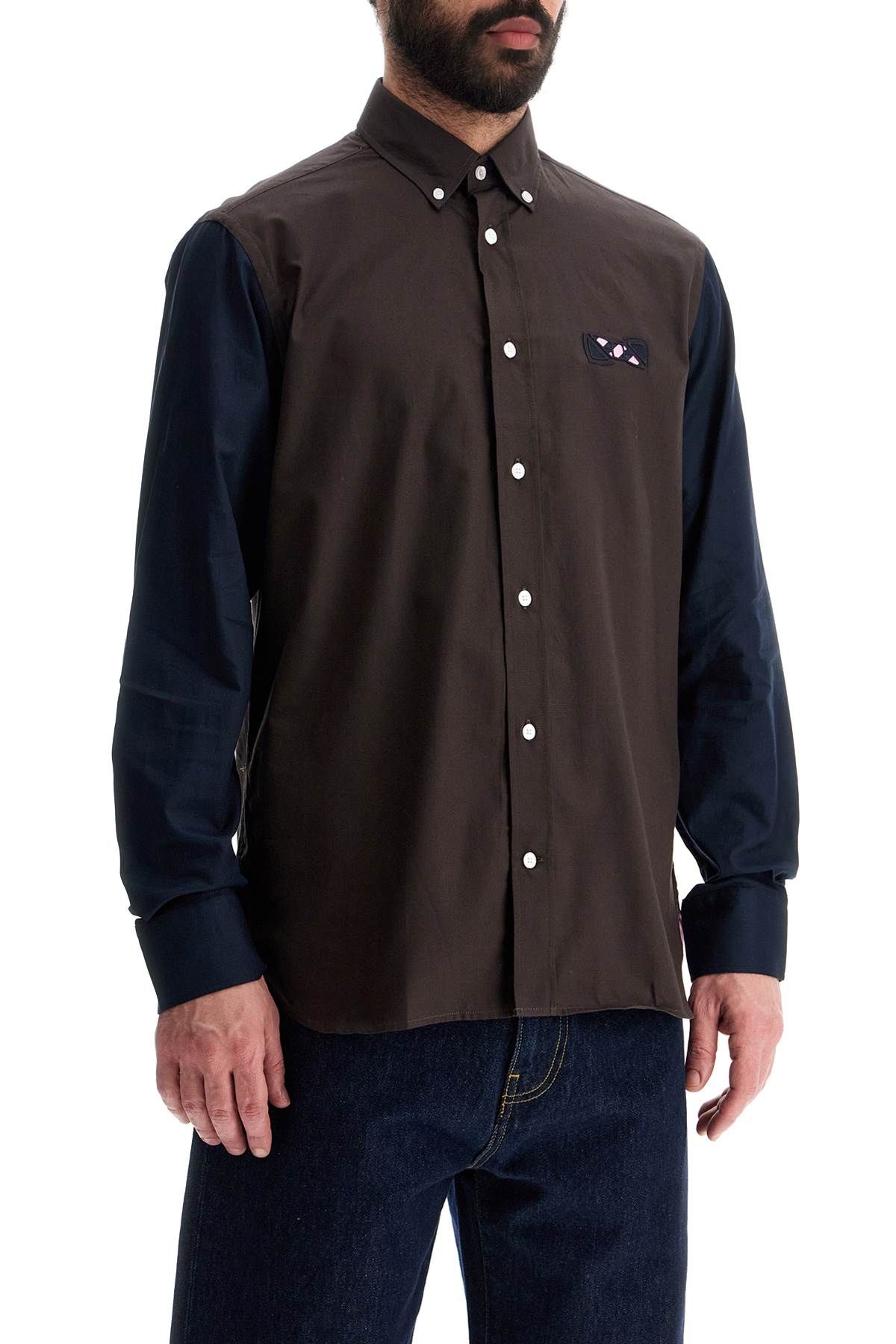 > mens 브라운 and 블루 패턴 롱 슬리브 코튼 셔츠